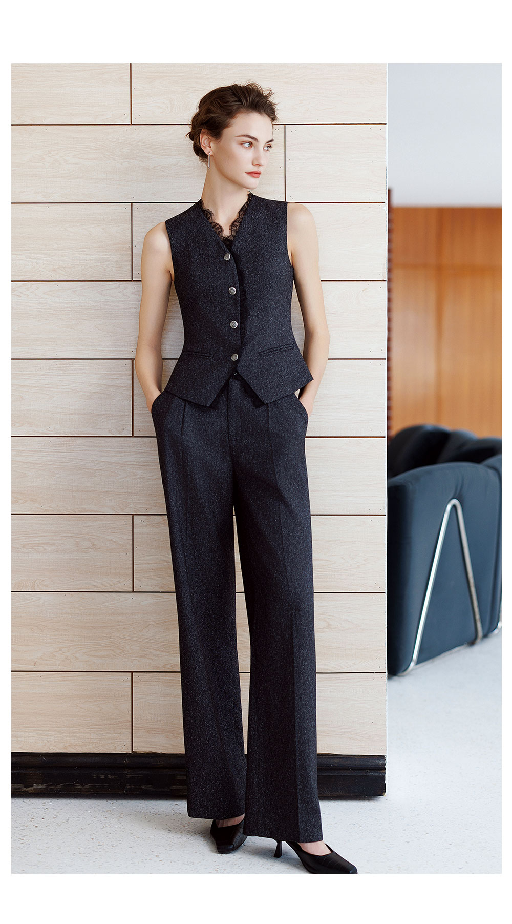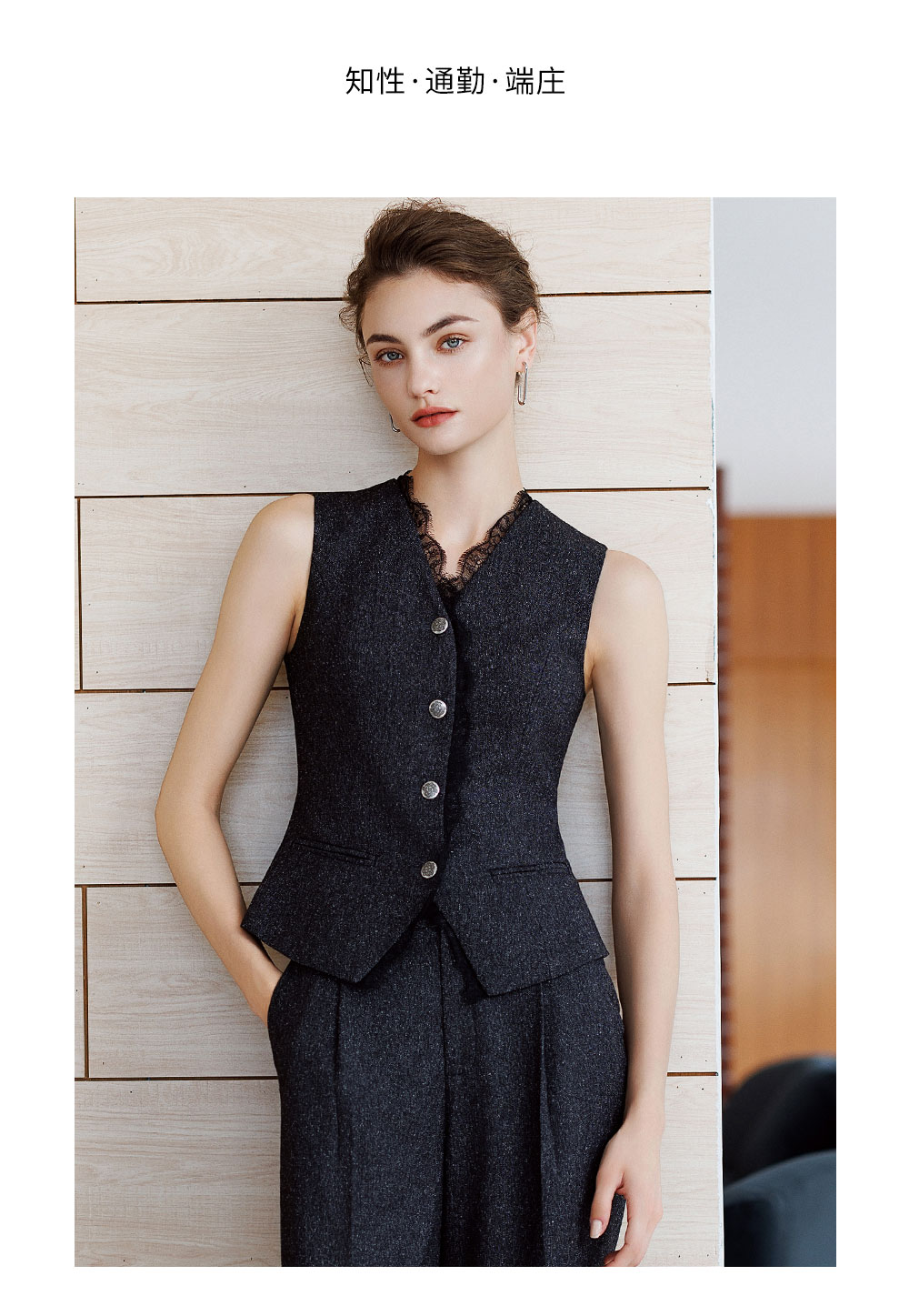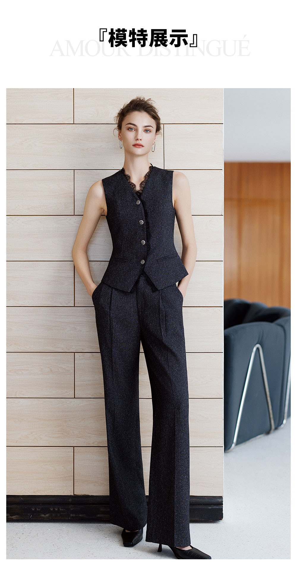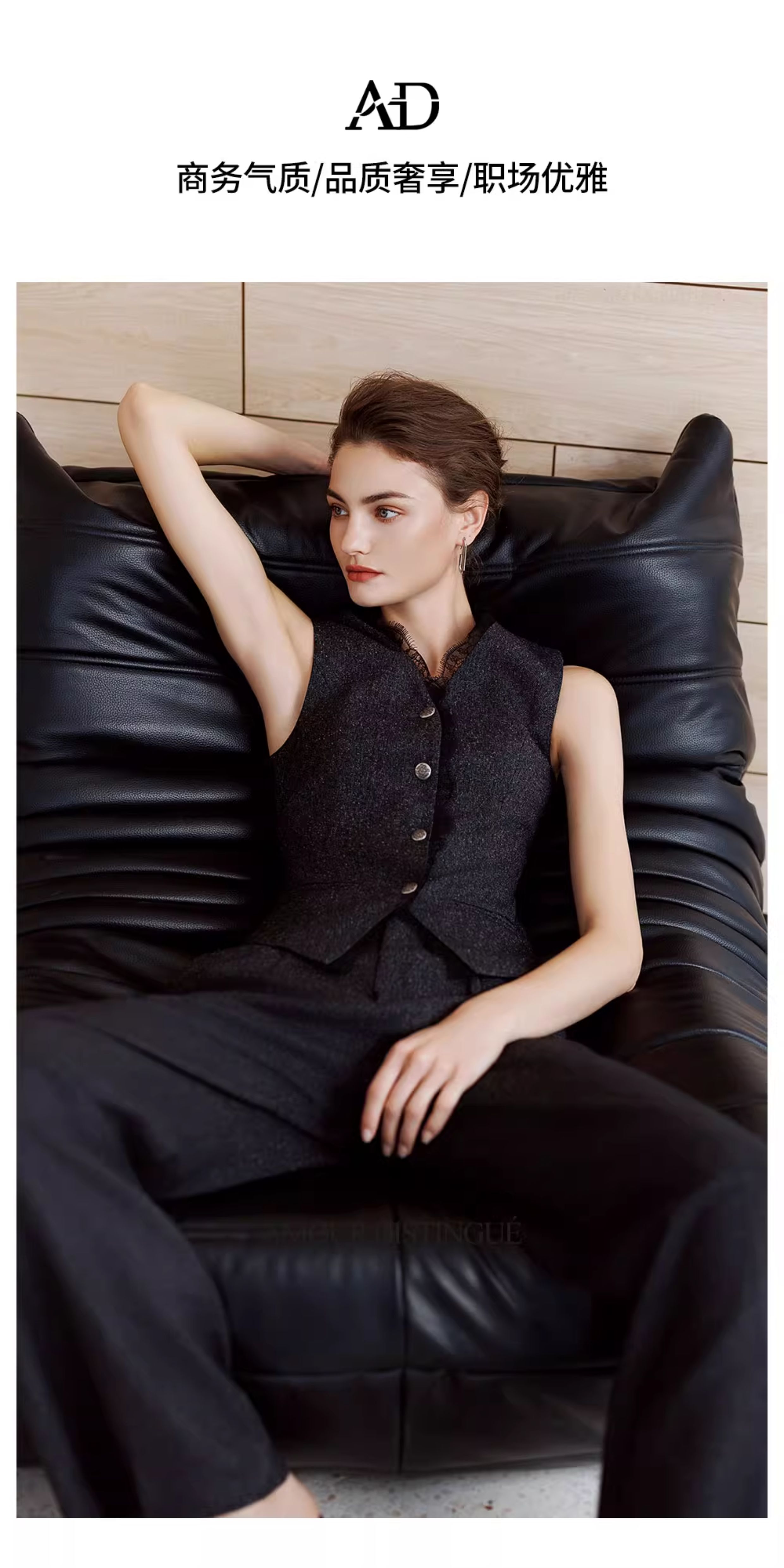 AD时尚英伦风马甲女高级感职业装蕾丝边马夹上衣花灰色直筒西装裤
