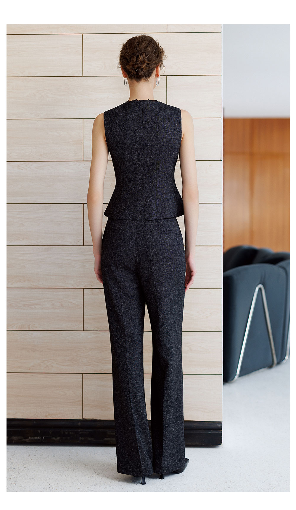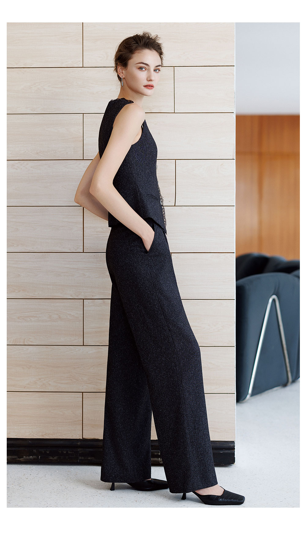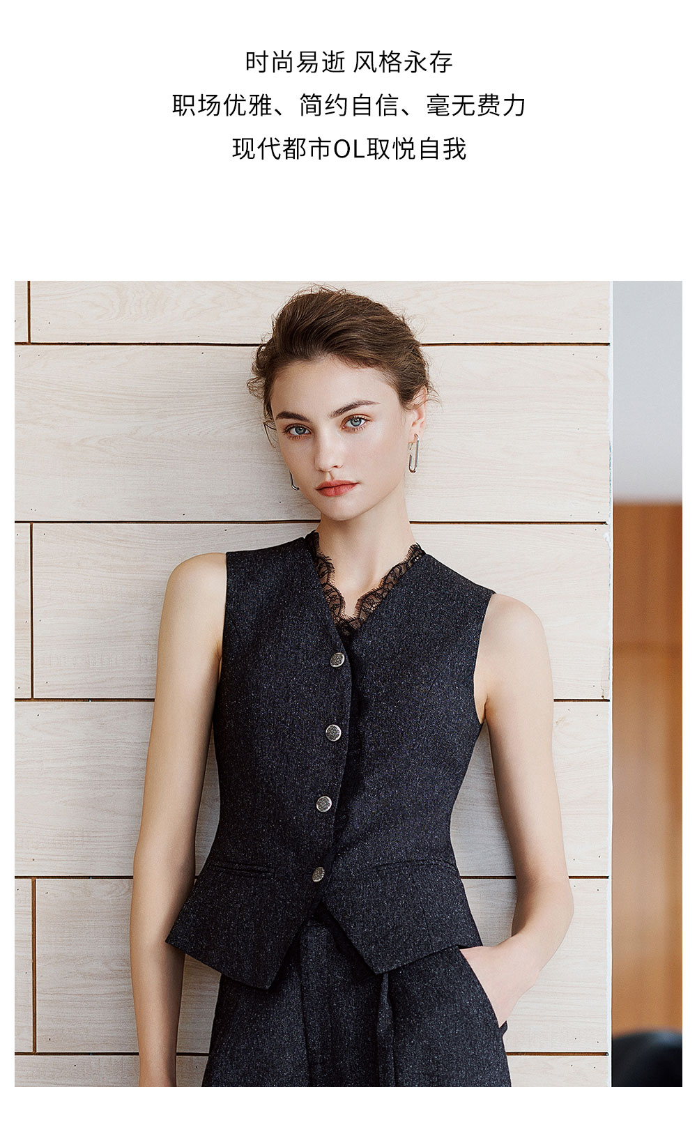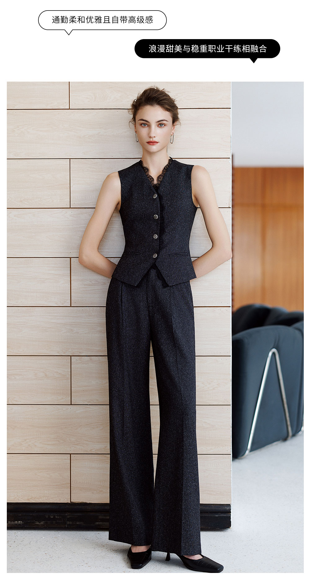 AD时尚英伦风马甲女高级感职业装蕾丝边马夹上衣花灰色直筒西装裤