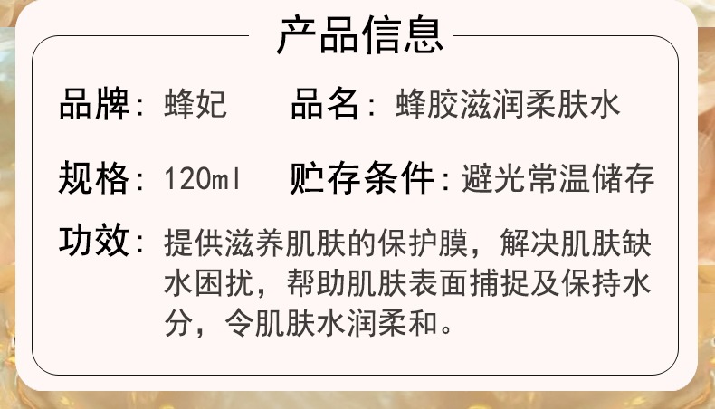 蜂妃蜂胶滋润柔肤水120ml控油收敛收缩毛孔提亮肤色定妆水官方正品包邮