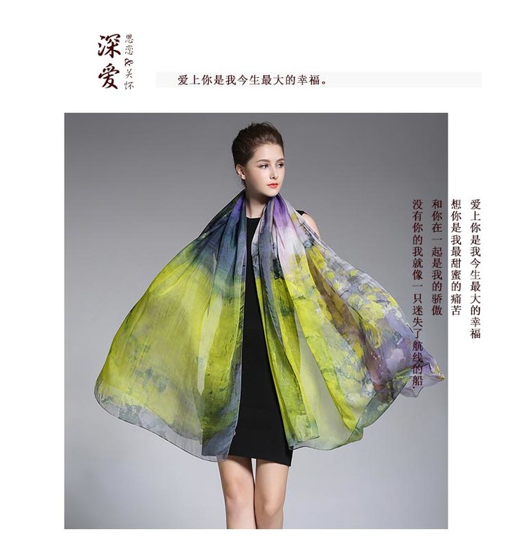 优品堂“水墨朦胧”桑蚕丝丝巾高档礼品围巾喷绘