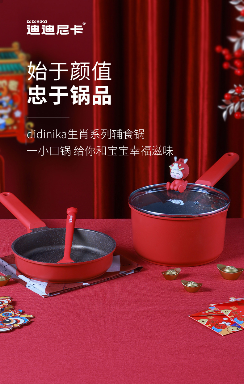 韩国迪迪尼卡didinika龙辅食锅陶瓷婴儿小奶锅宝宝辅食锅煮粥食品级不粘锅汤锅18cm