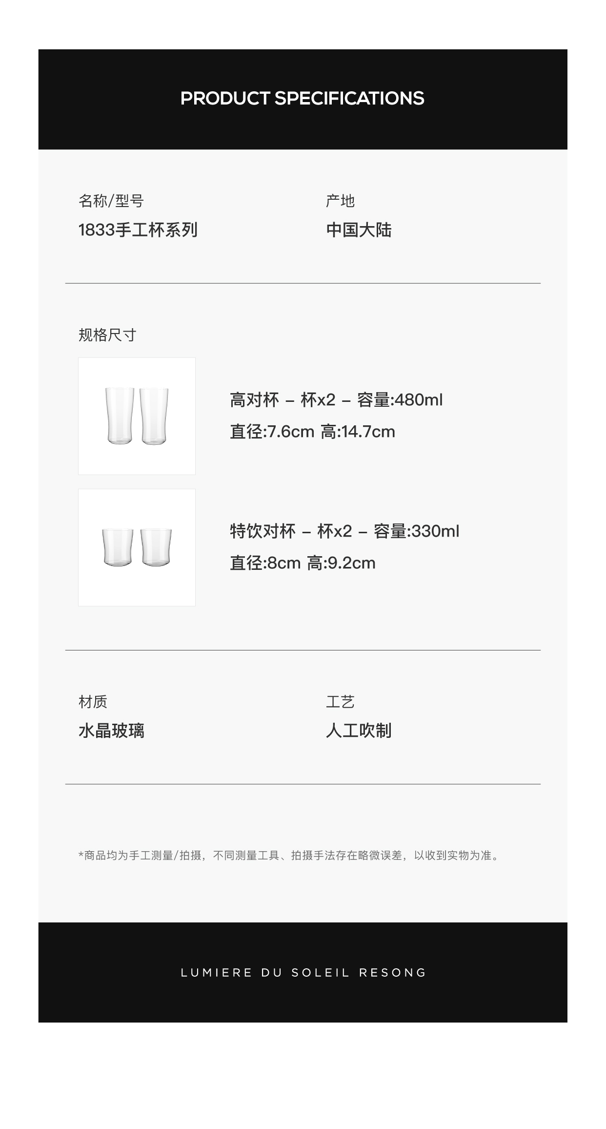 1833手工水晶玻璃水杯系列 RESONG日诵家居 特饮对杯 高对杯