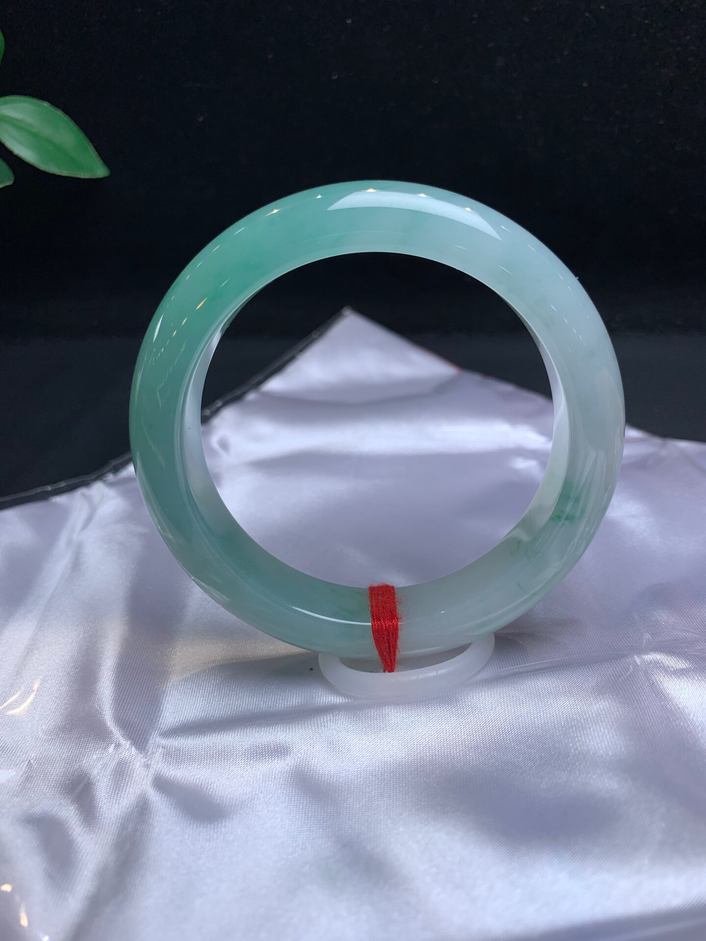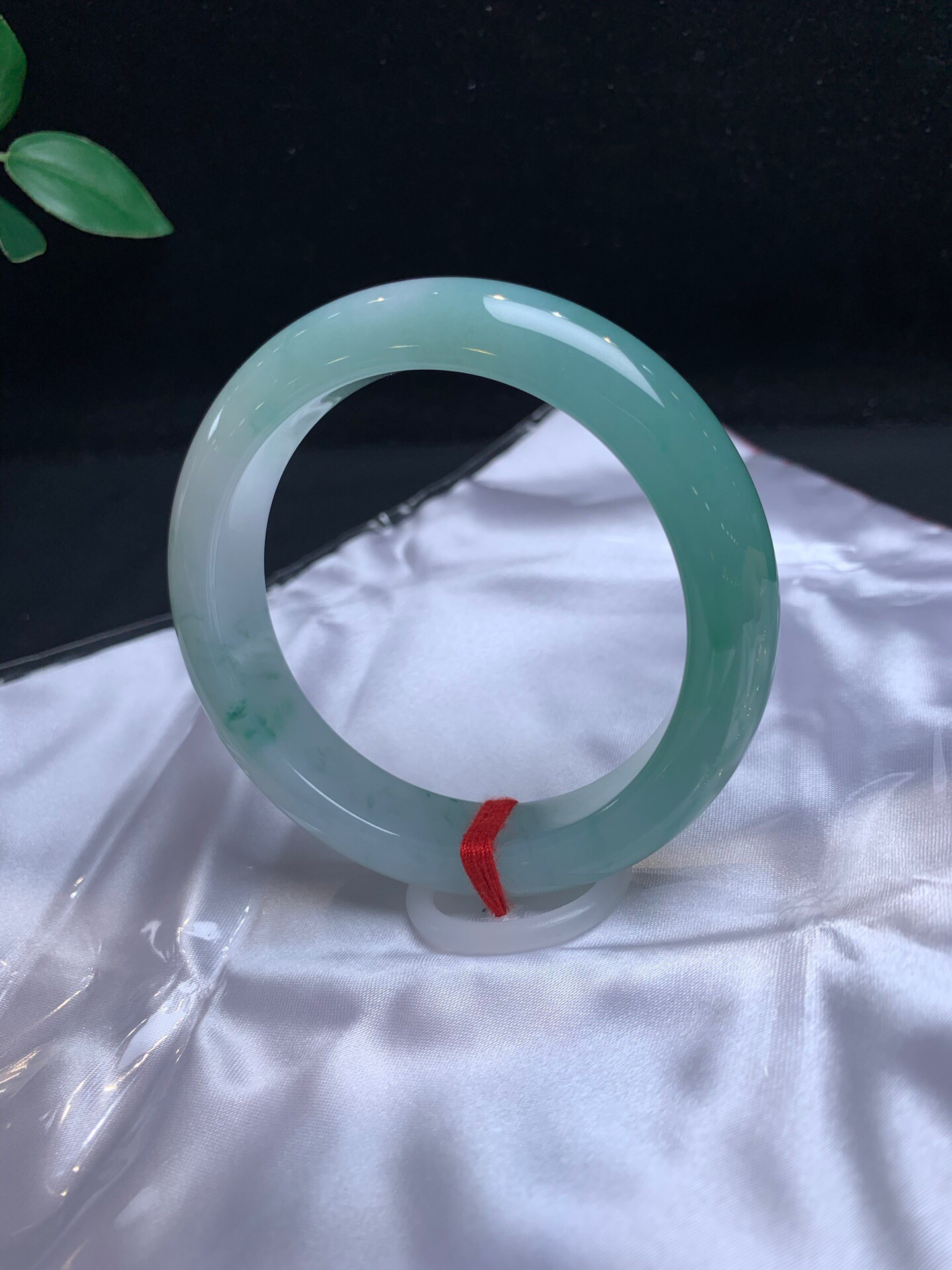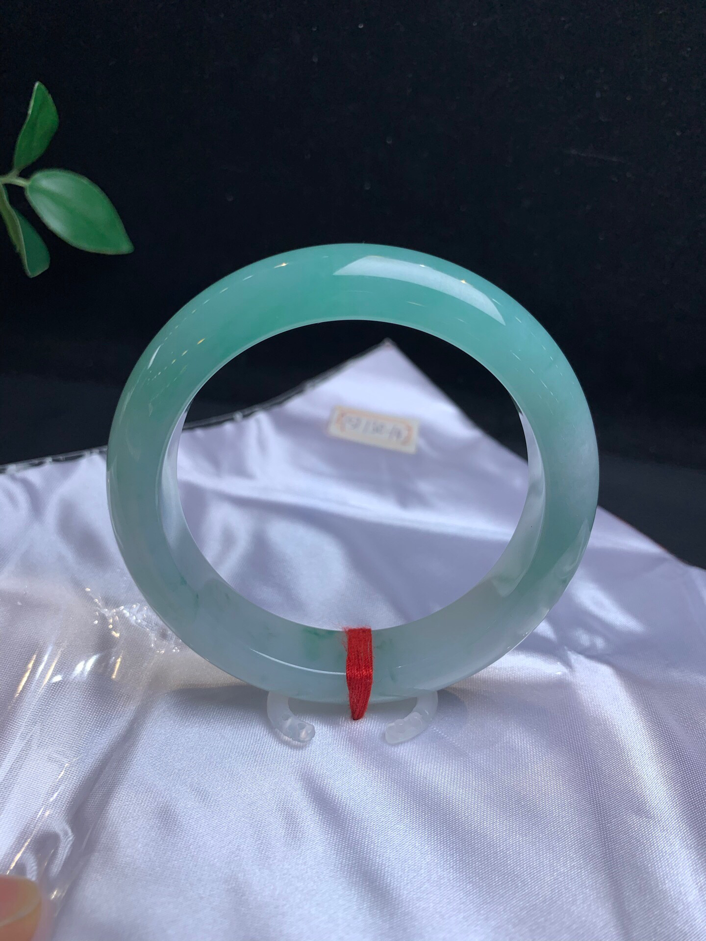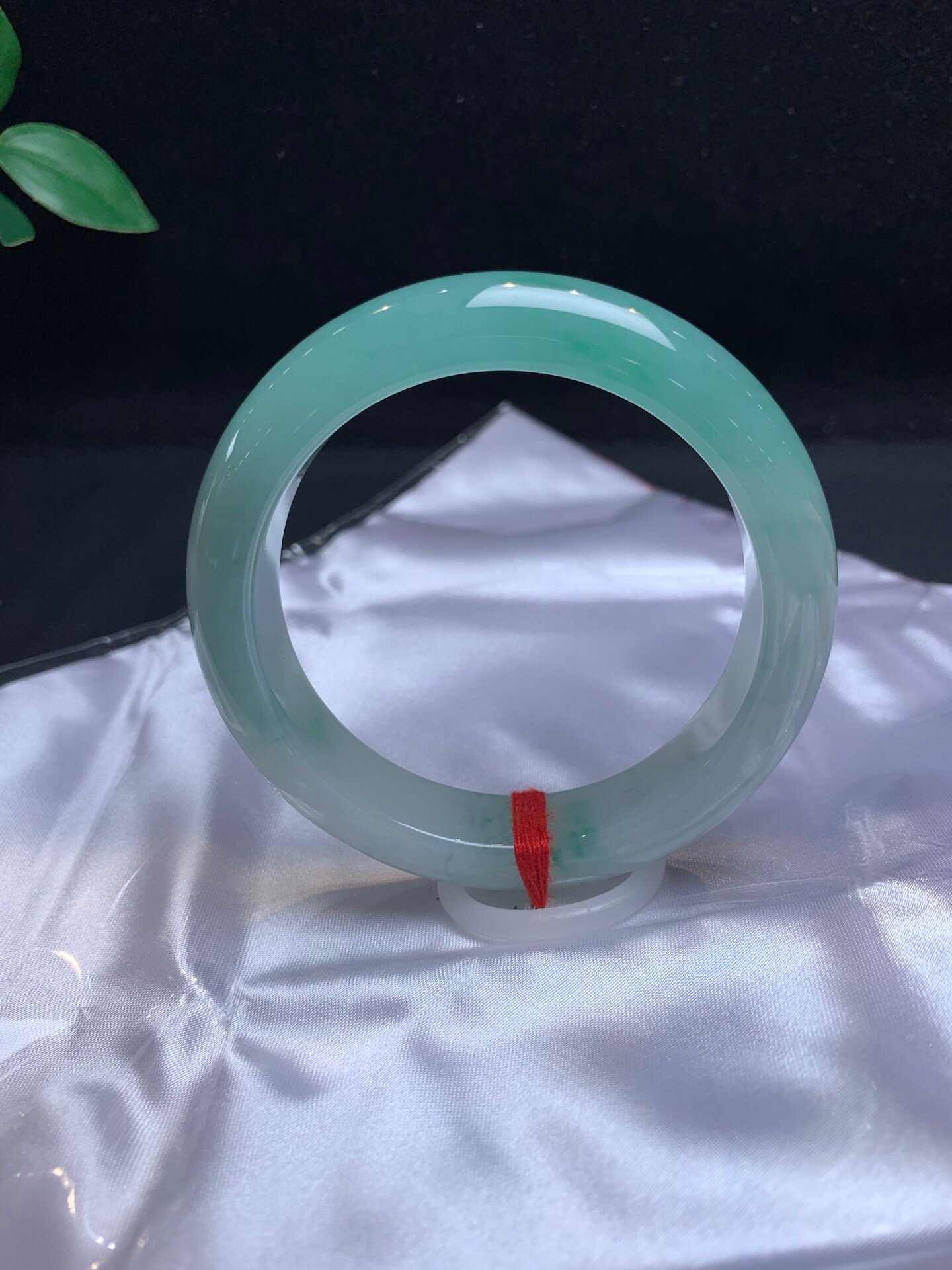 620083,57 冰绿正圈手镯,大半圈浓绿底色,底妆非常细、干净清新