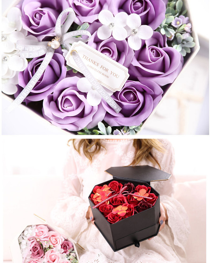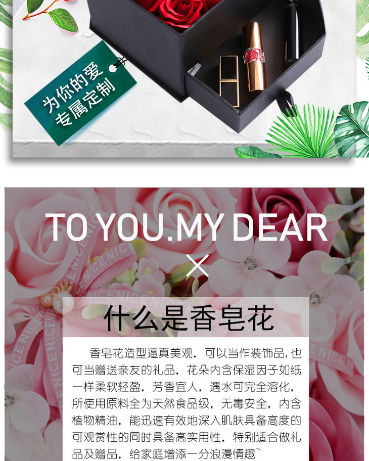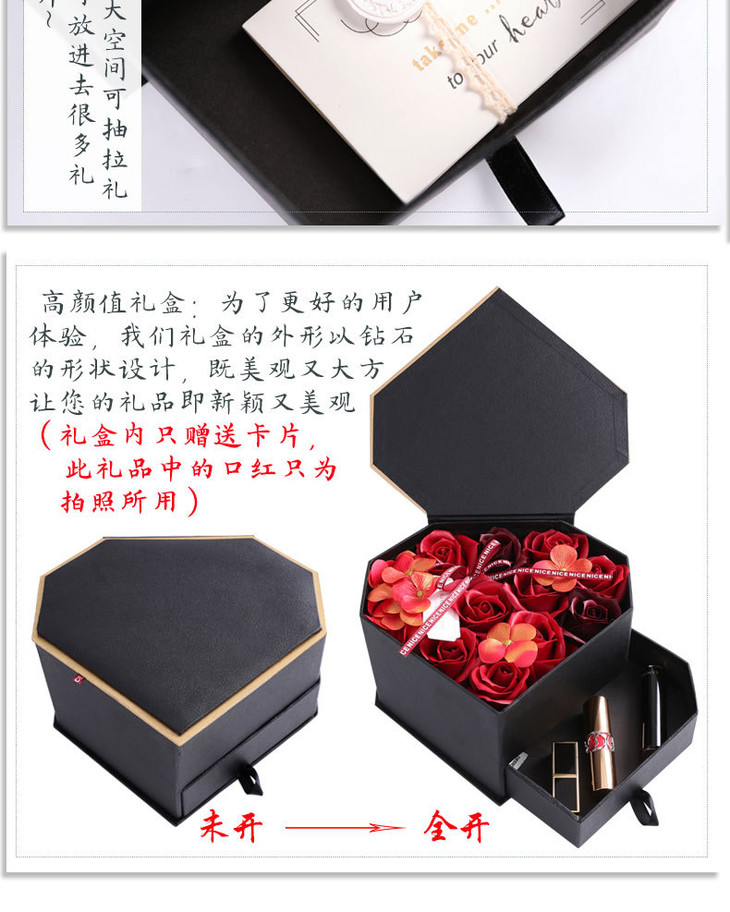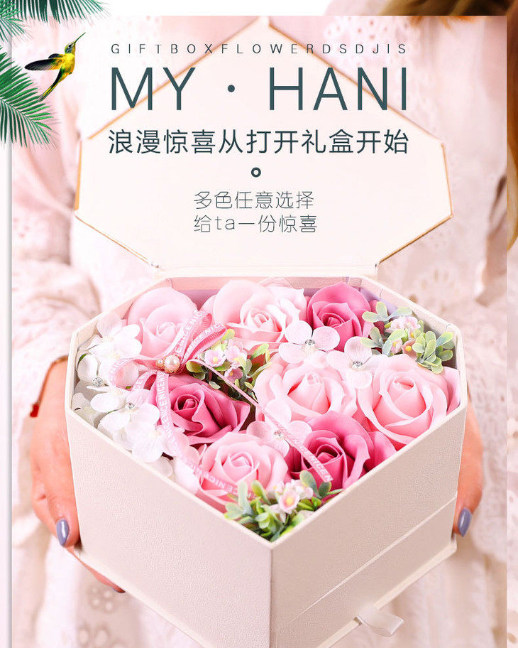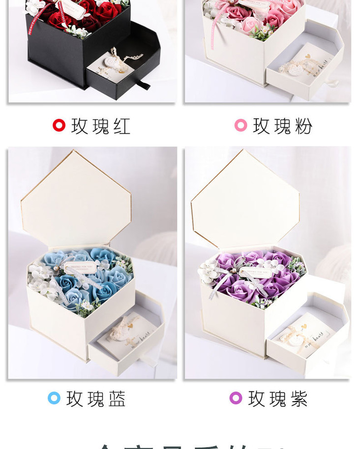 【礼物】.手工香皂花礼盒玫瑰花心形项链首饰心形套装情人节礼物送女友闺蜜