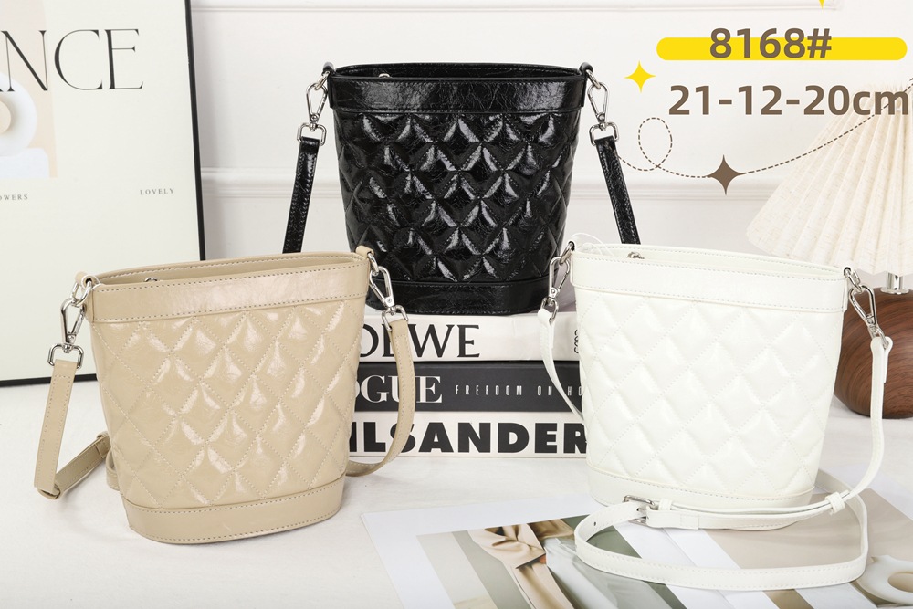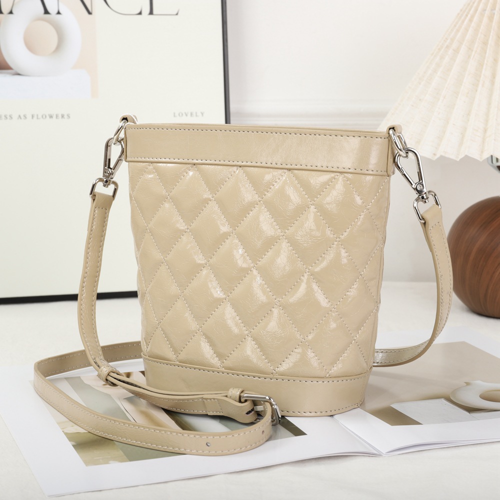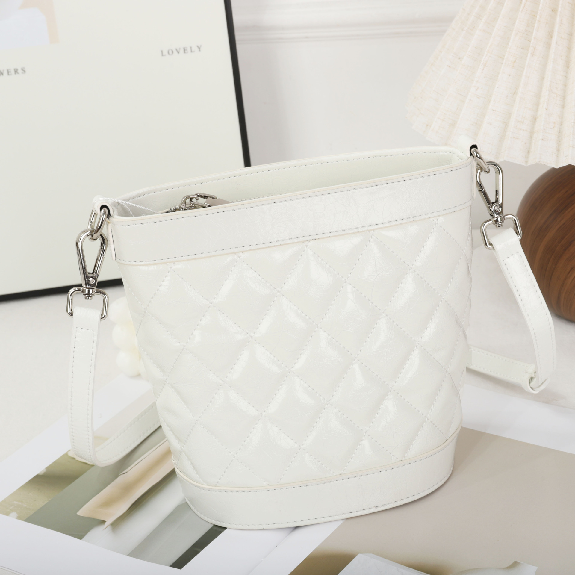 【预售3天】高级感水桶包油蜡皮小香风菱格包Z8168