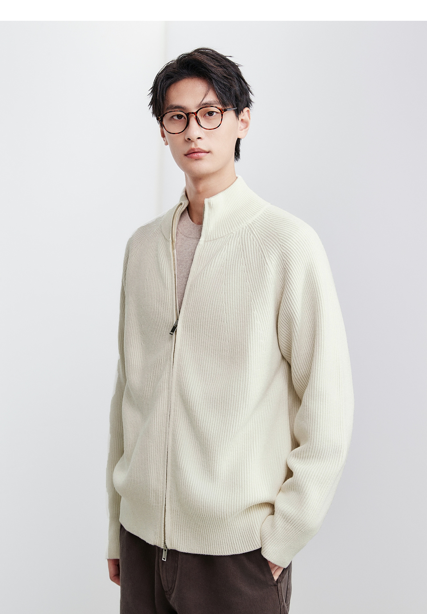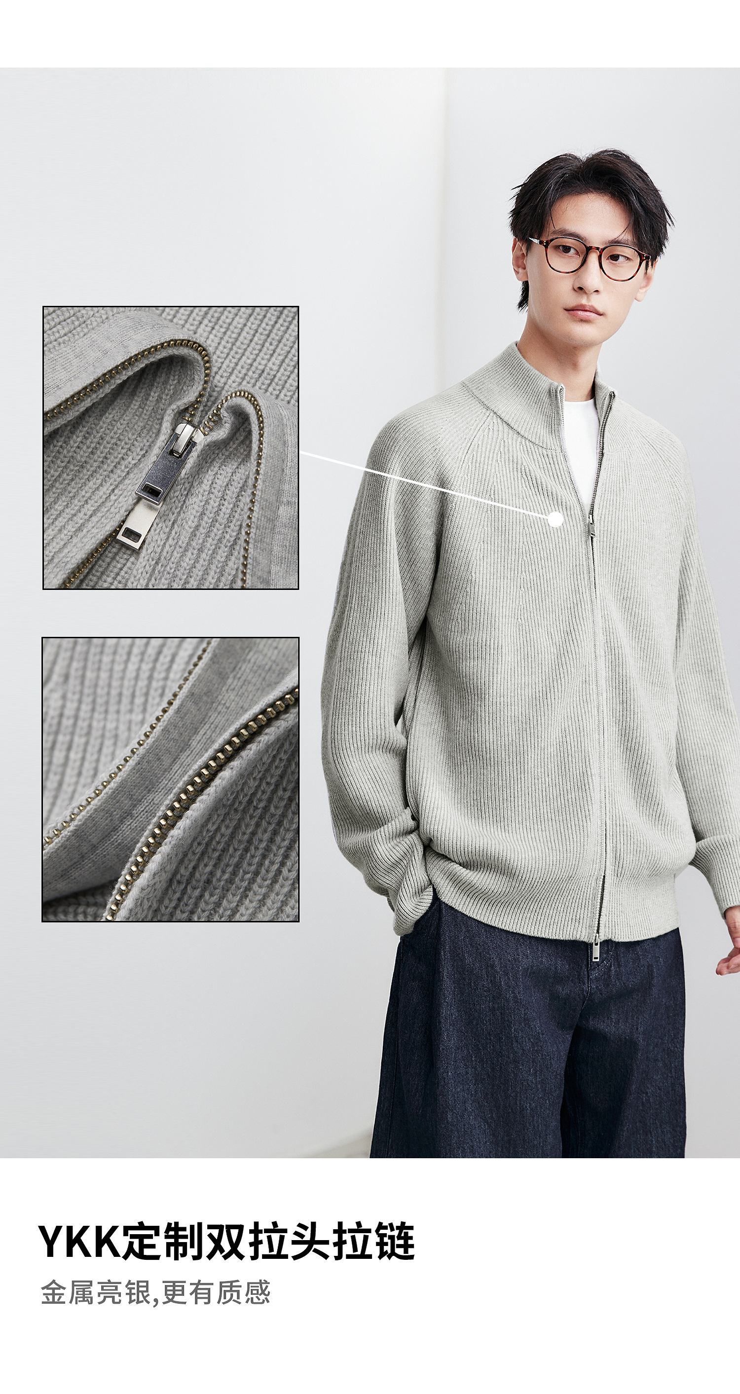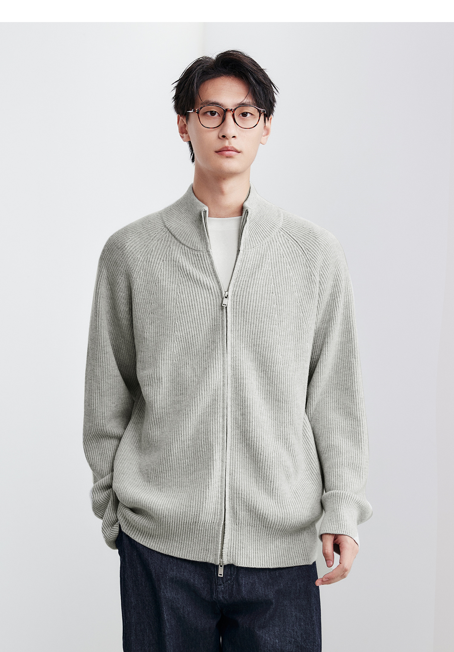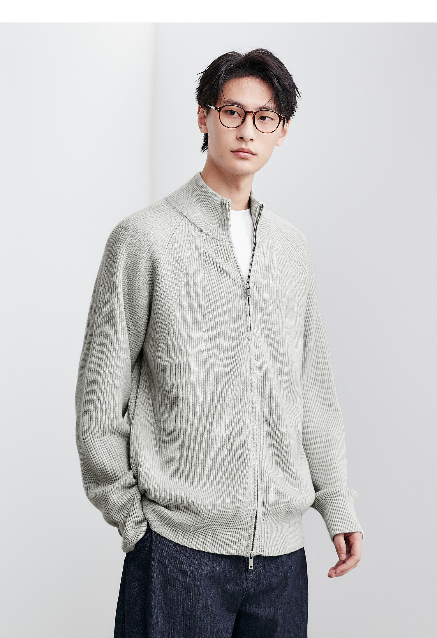 棉仓367826017-美利奴羊毛混纺拉链开衫