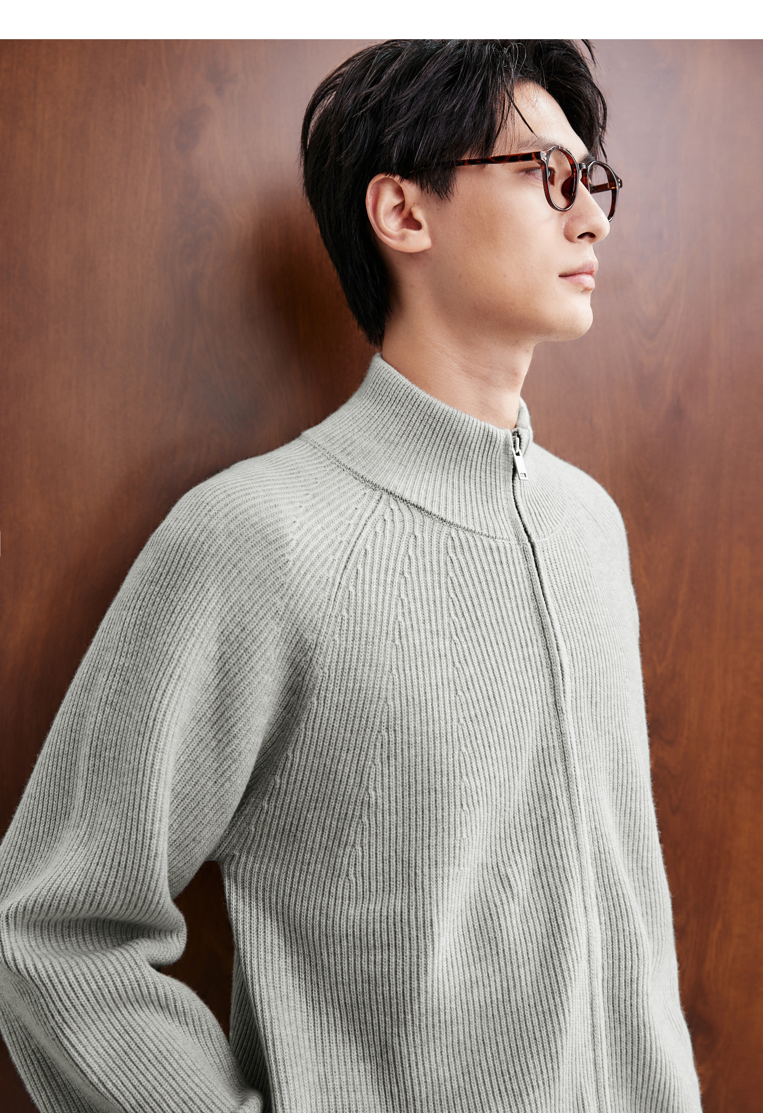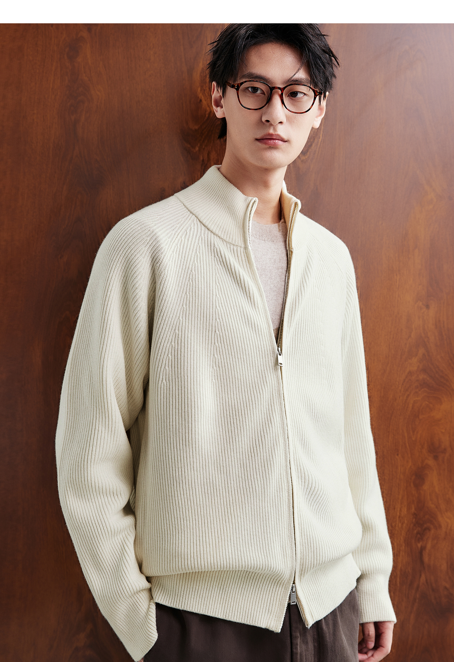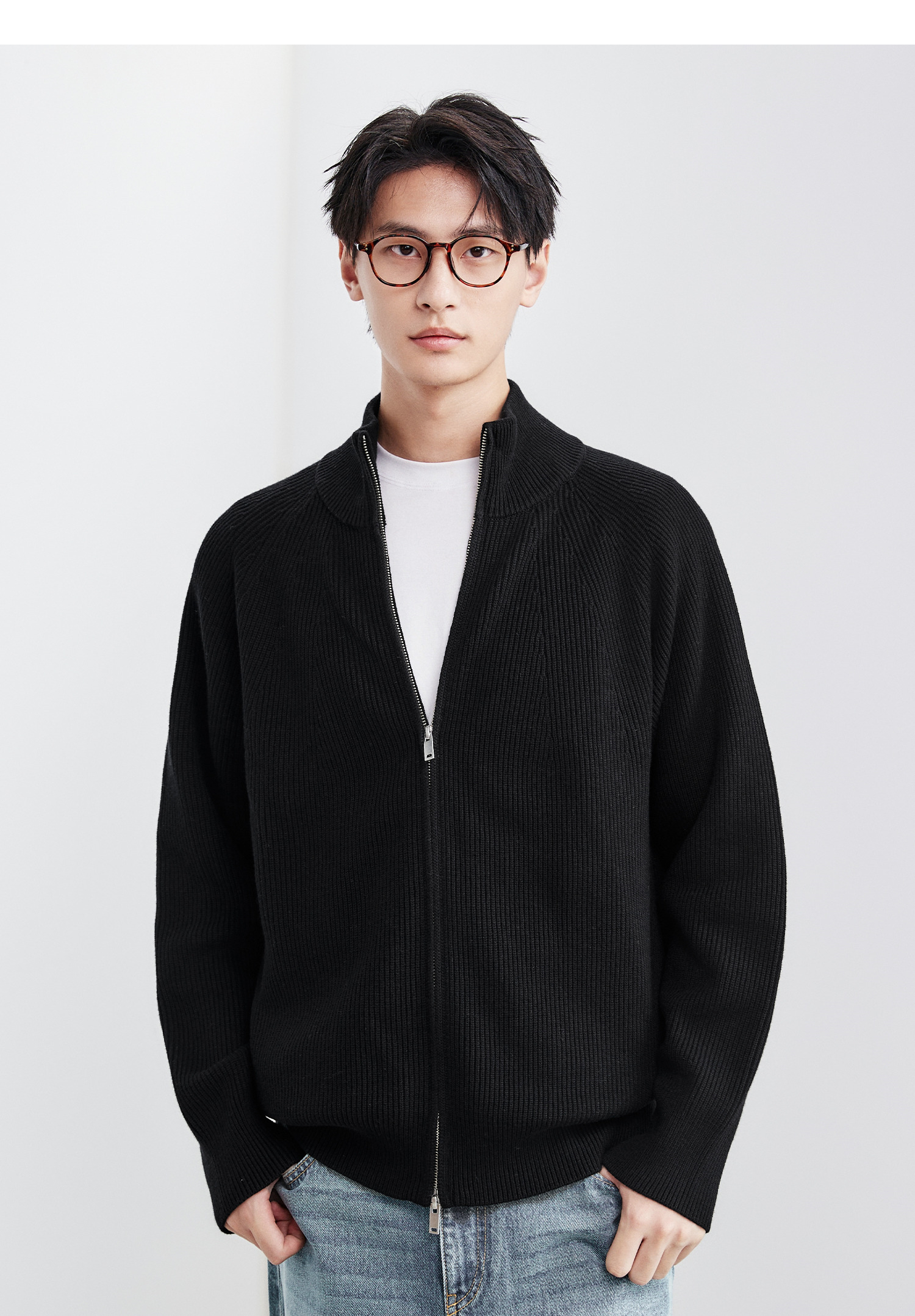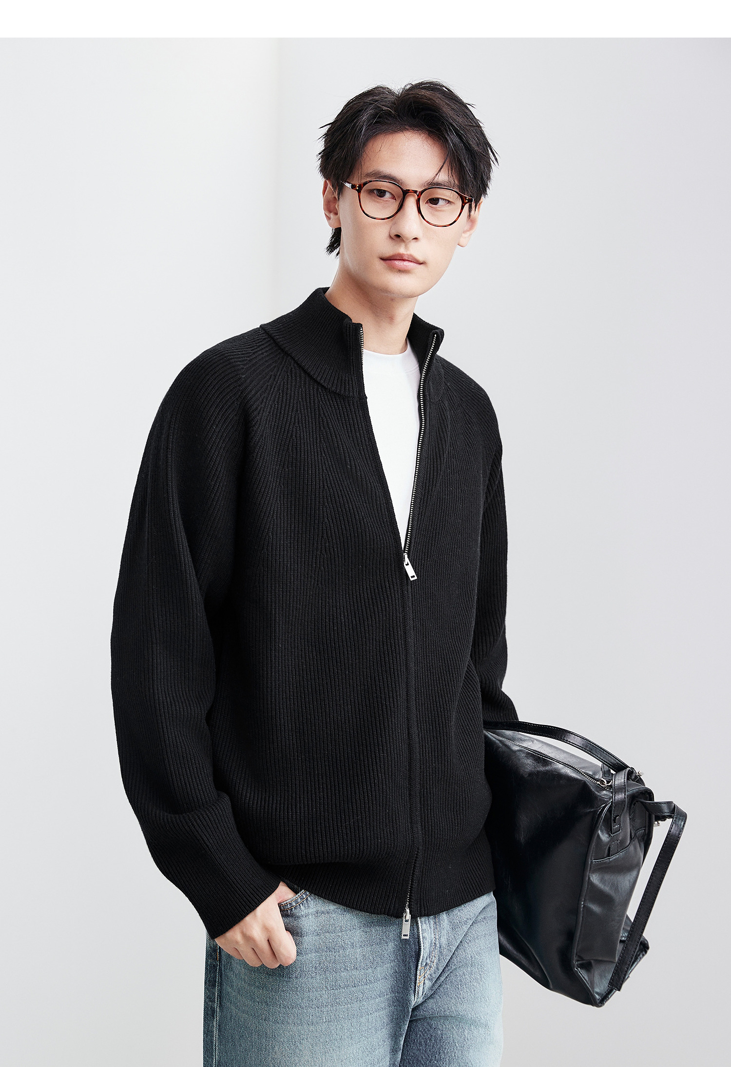 棉仓367826017-美利奴羊毛混纺拉链开衫