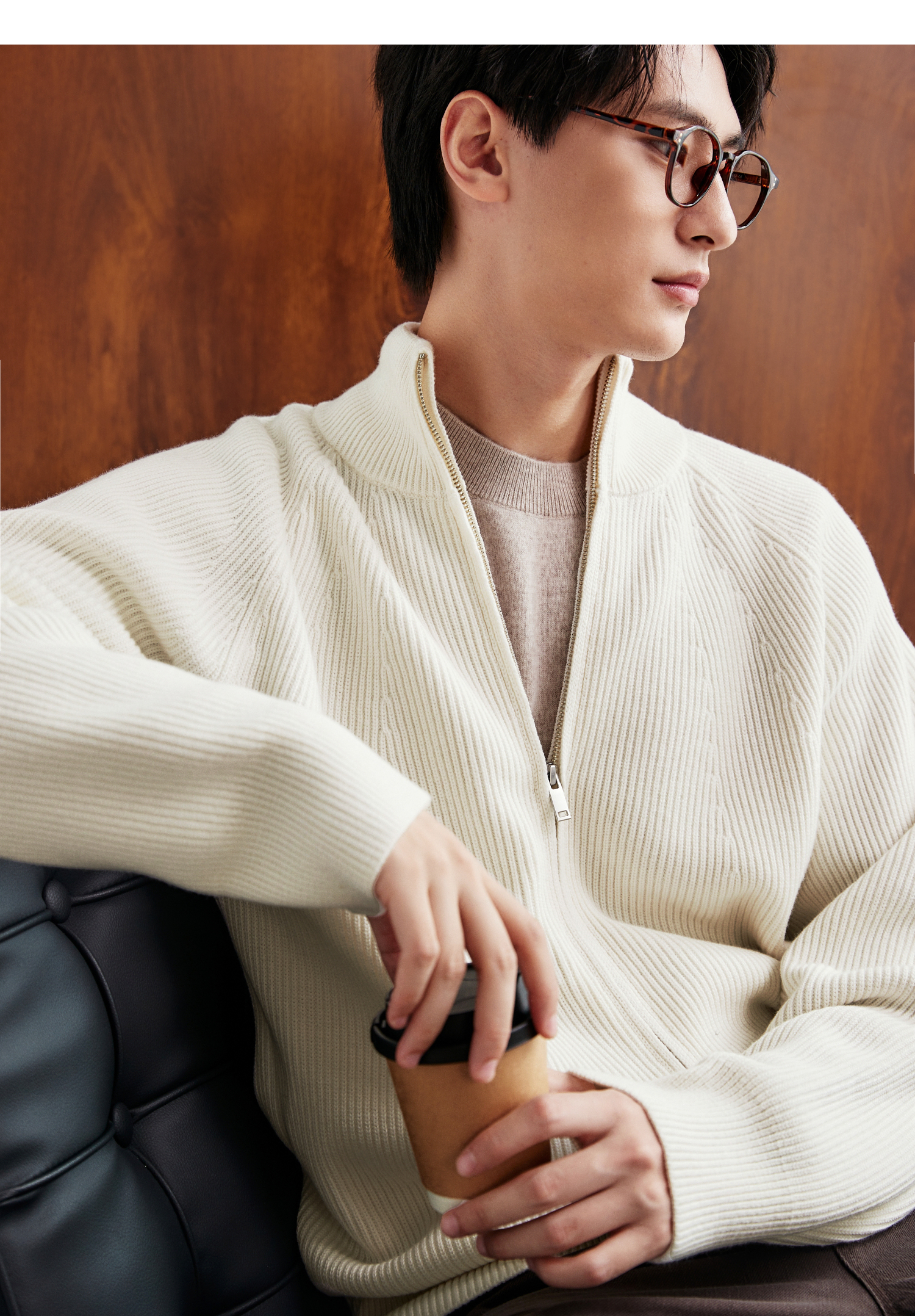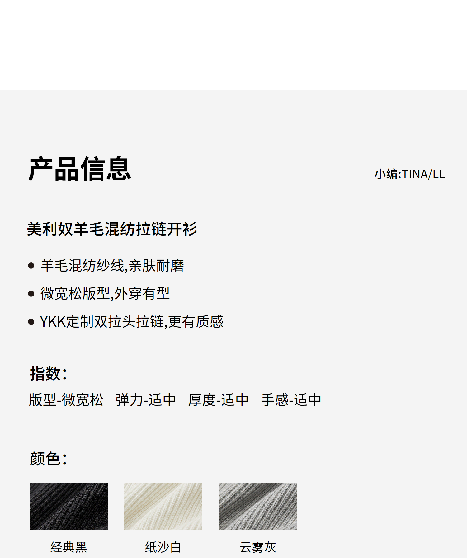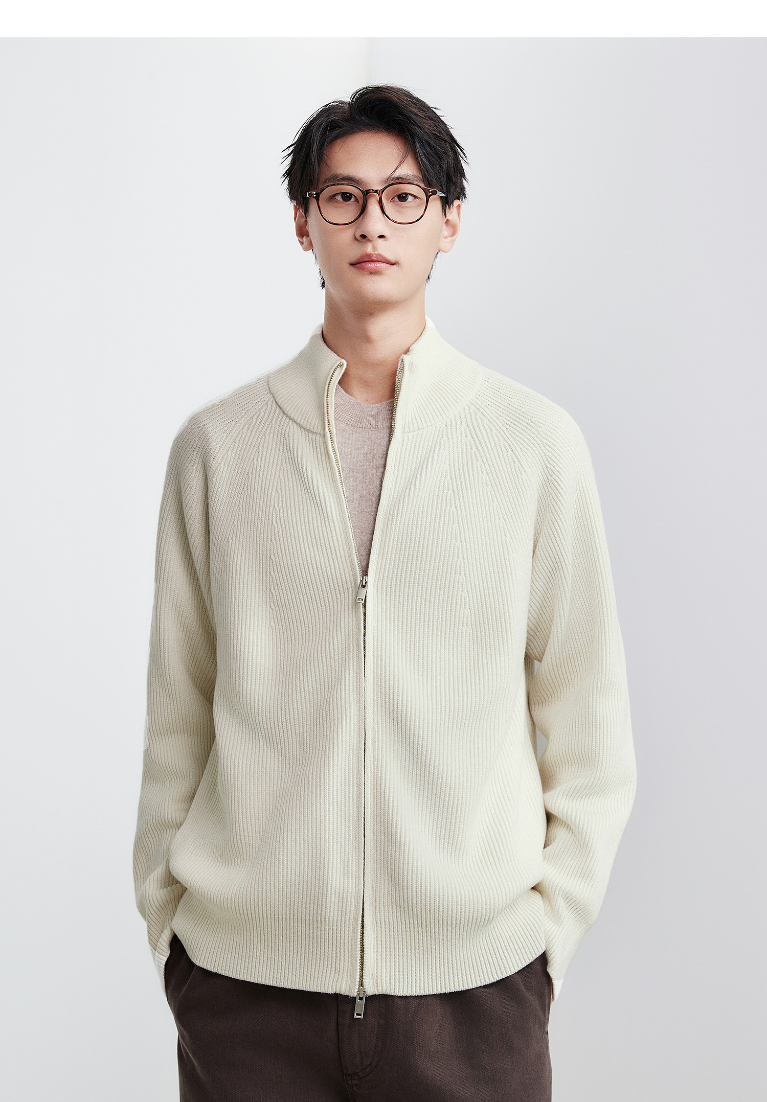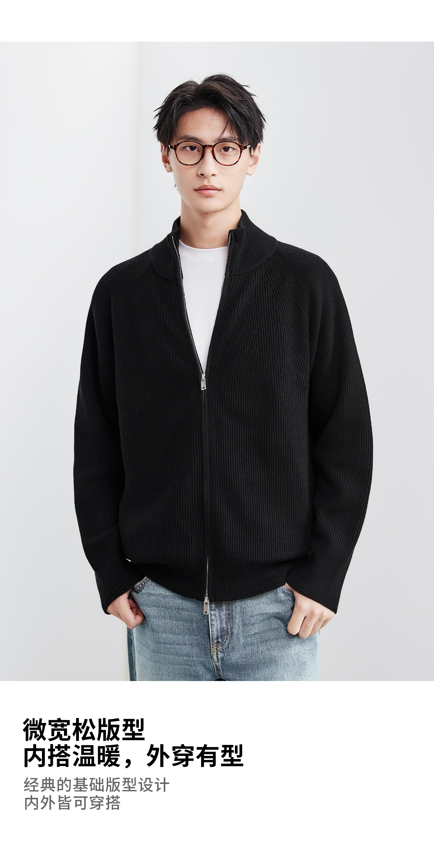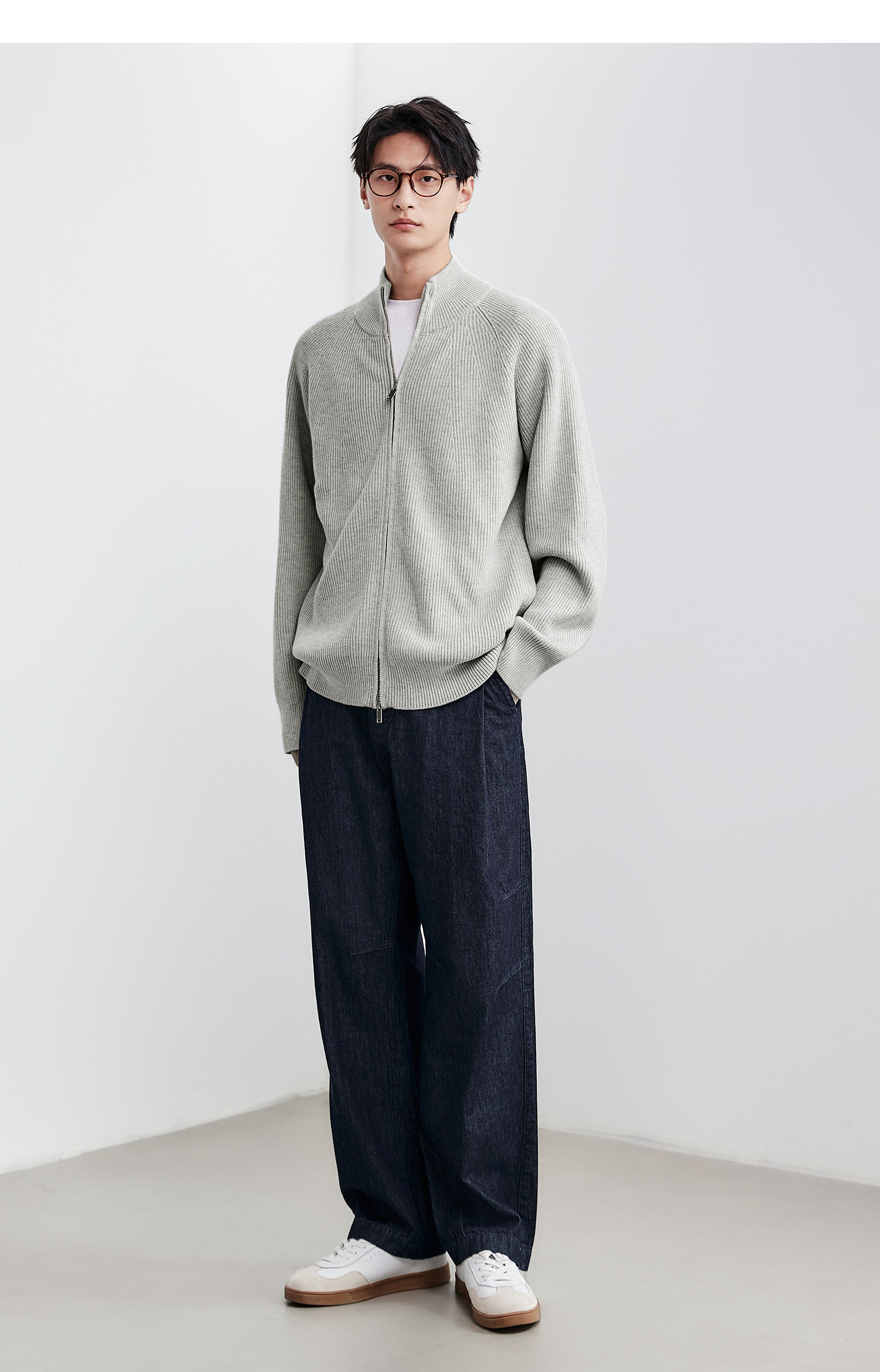 棉仓367826017-美利奴羊毛混纺拉链开衫