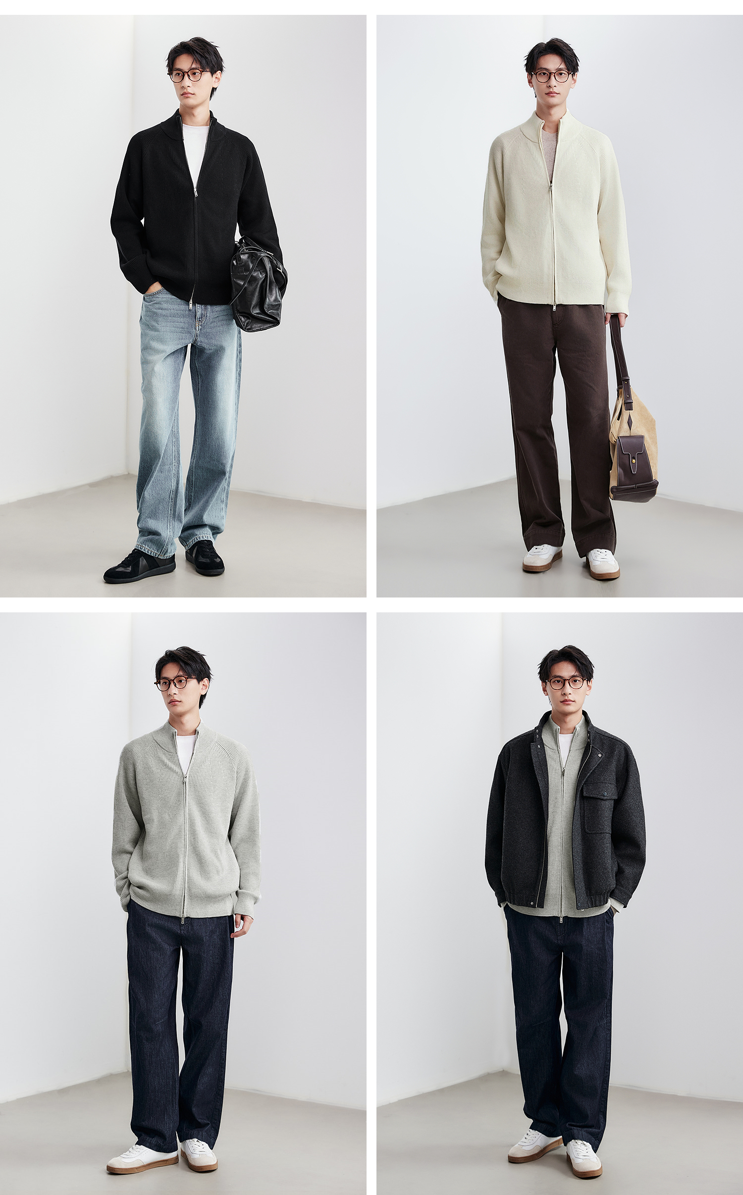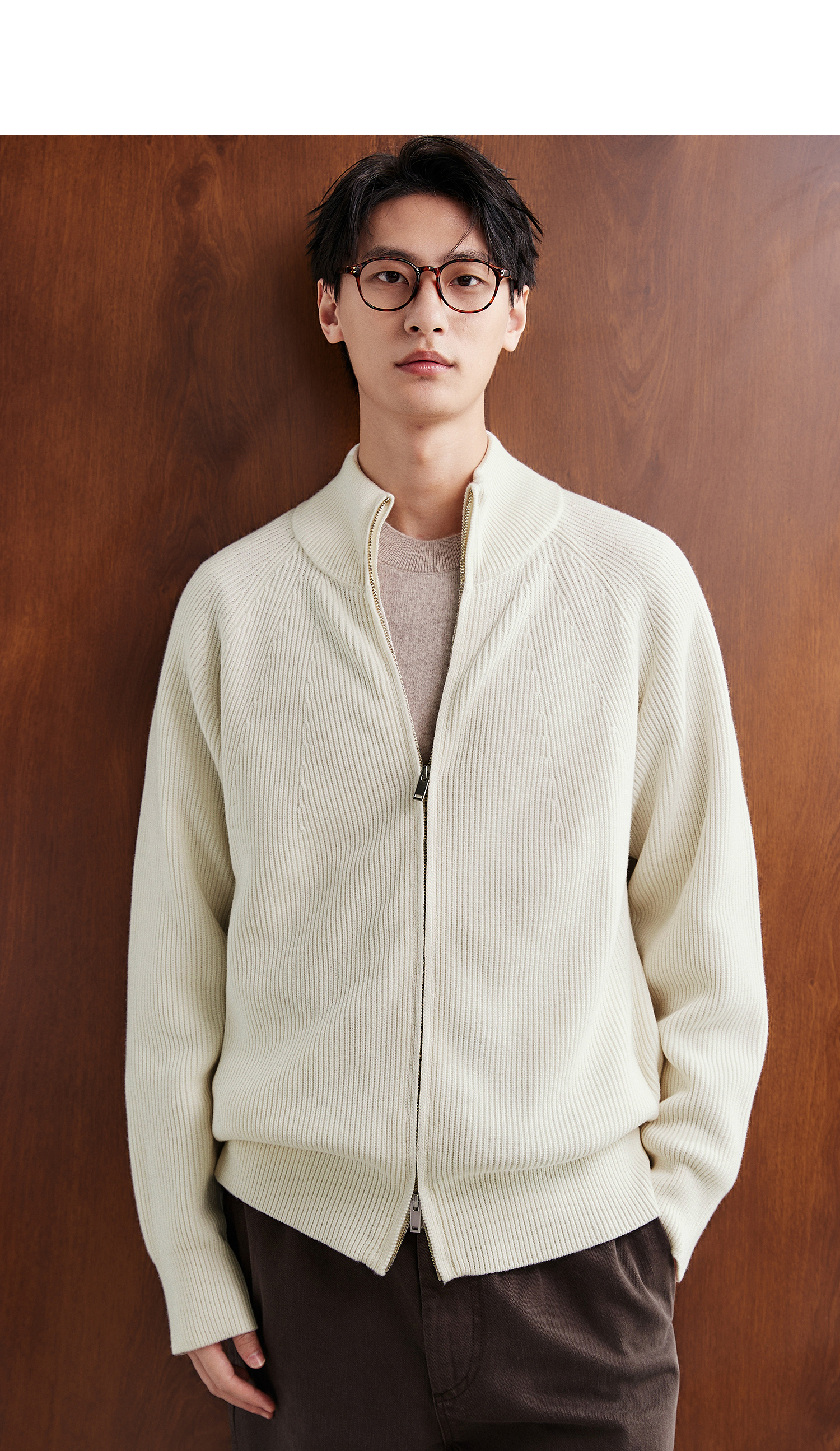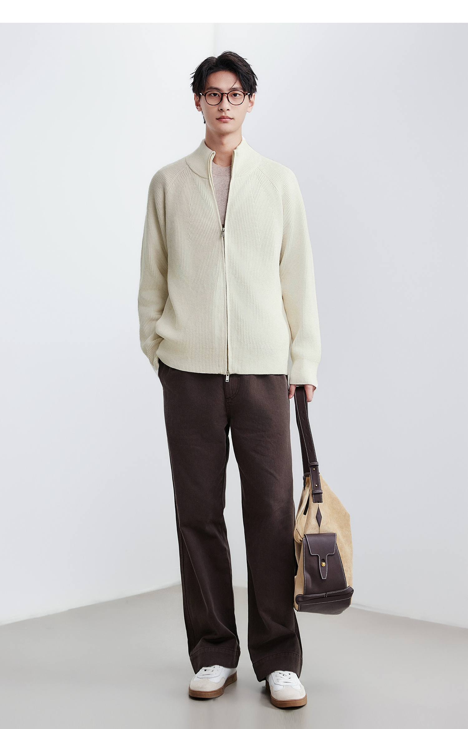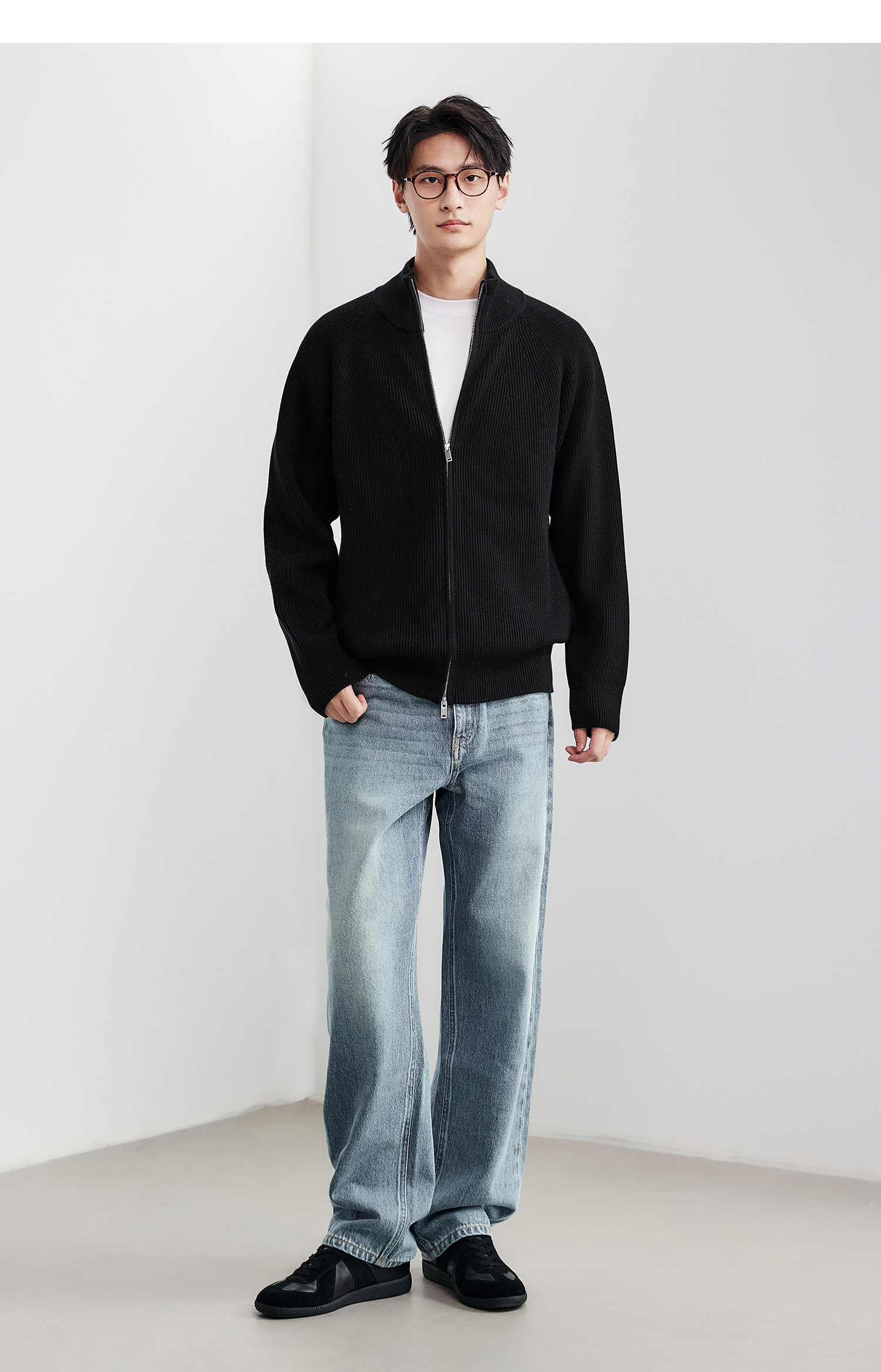 棉仓367826017-美利奴羊毛混纺拉链开衫