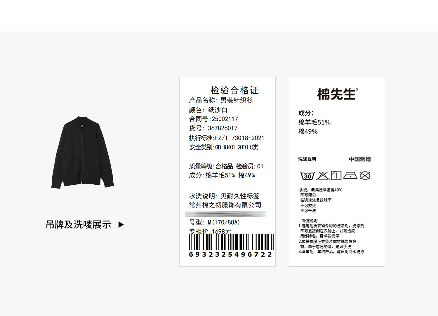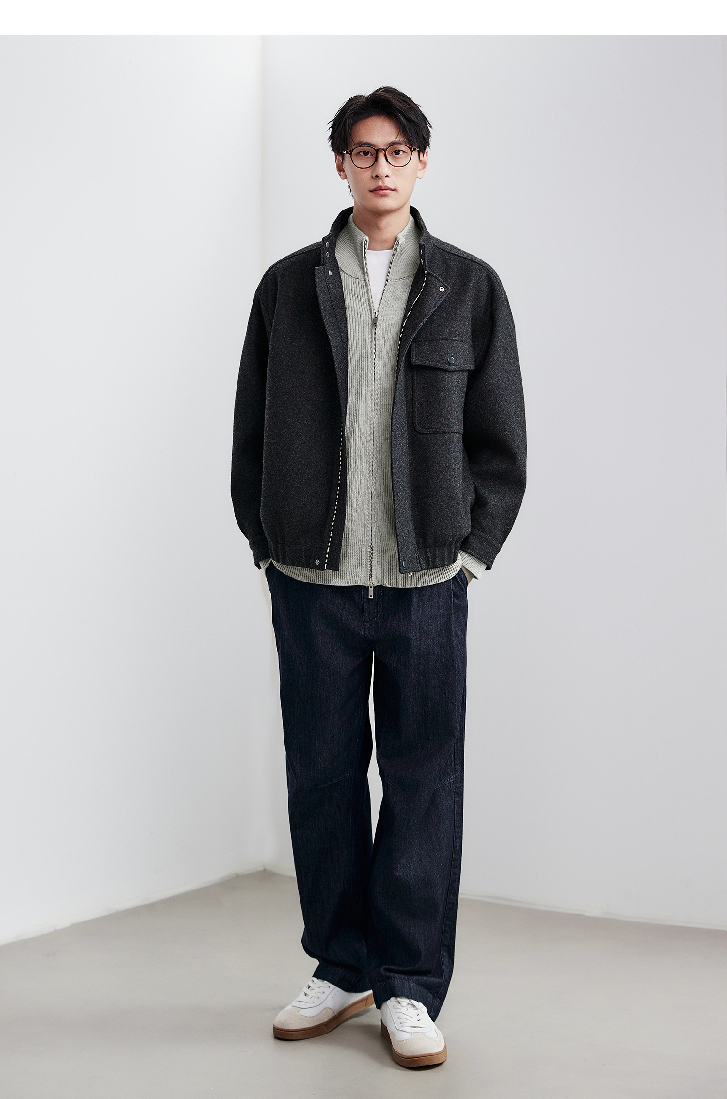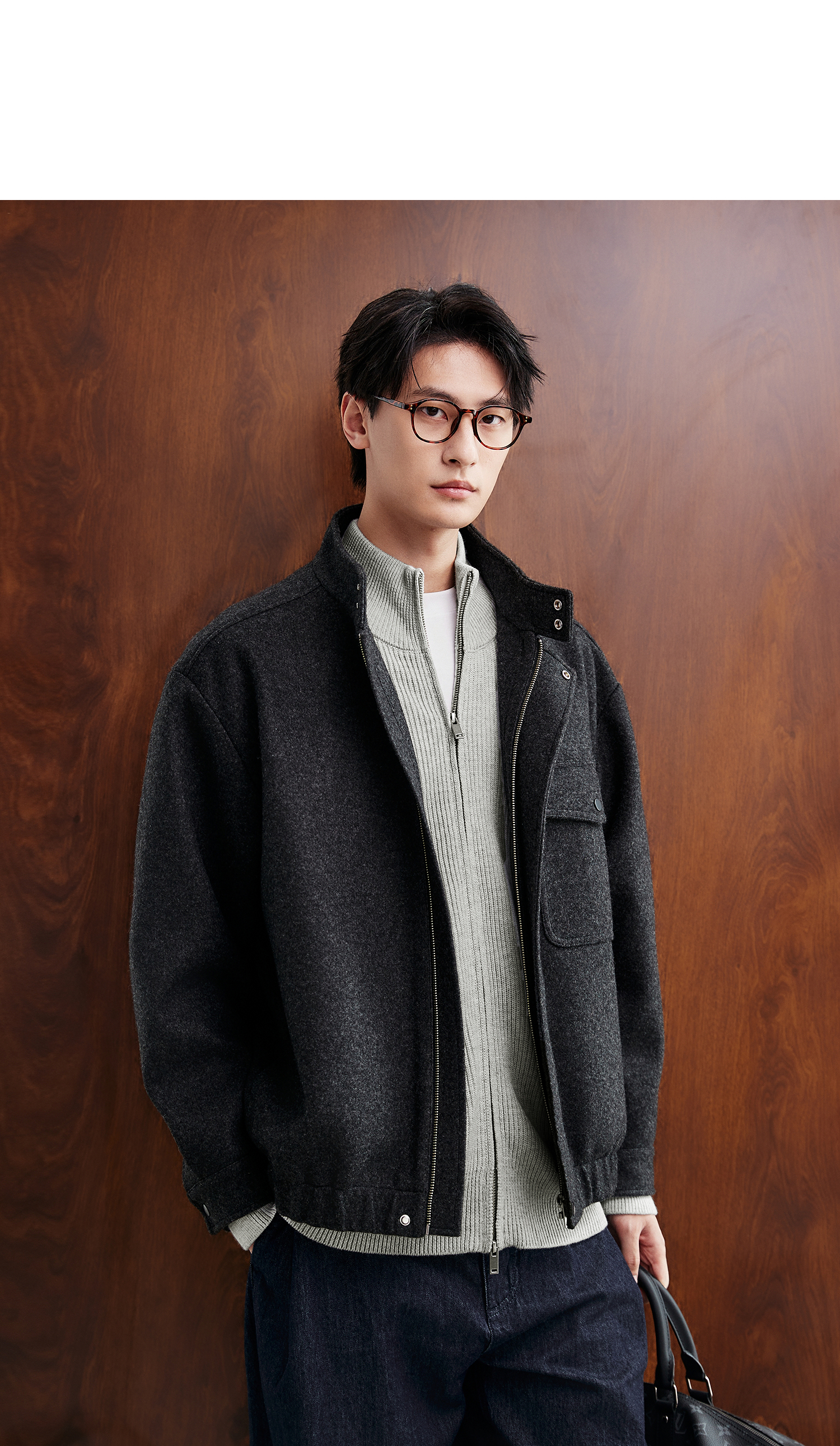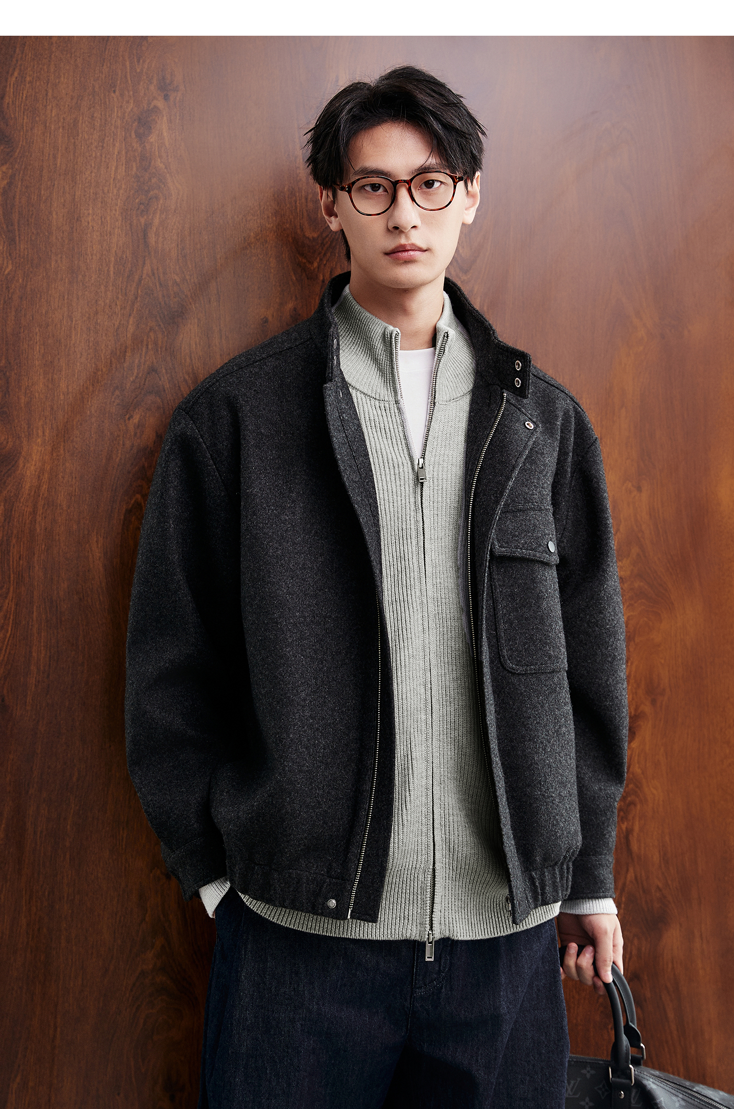 棉仓367826017-美利奴羊毛混纺拉链开衫