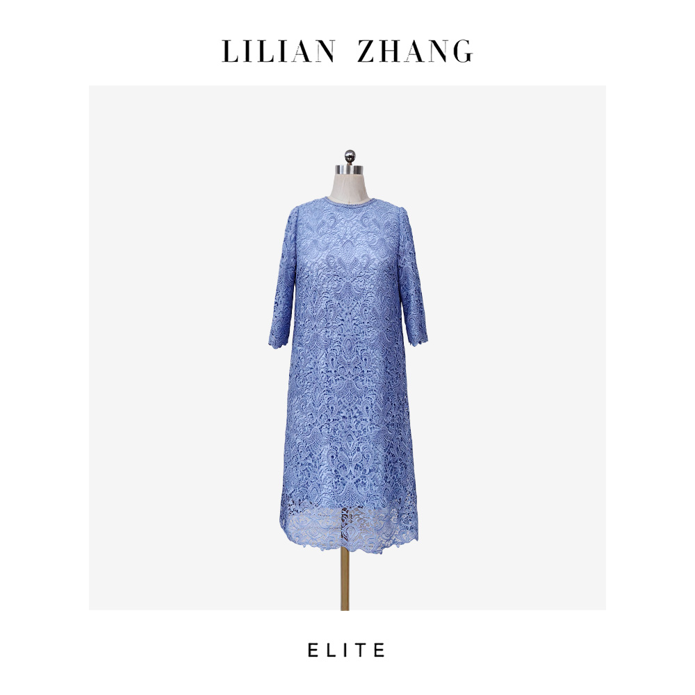 定制—静奢风—氛围战袍—复古奢雅—法式圆领蕾丝H型连衣裙 2501220