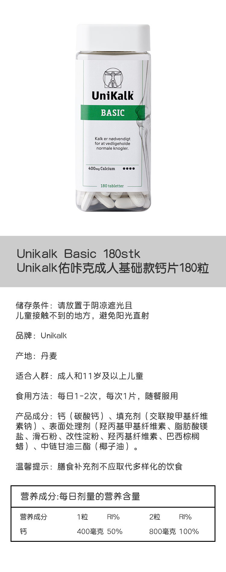 [极速送达-FX]Unikalk佑咔克成人基础款钙片180粒. Unikalk Basic 180stk.
