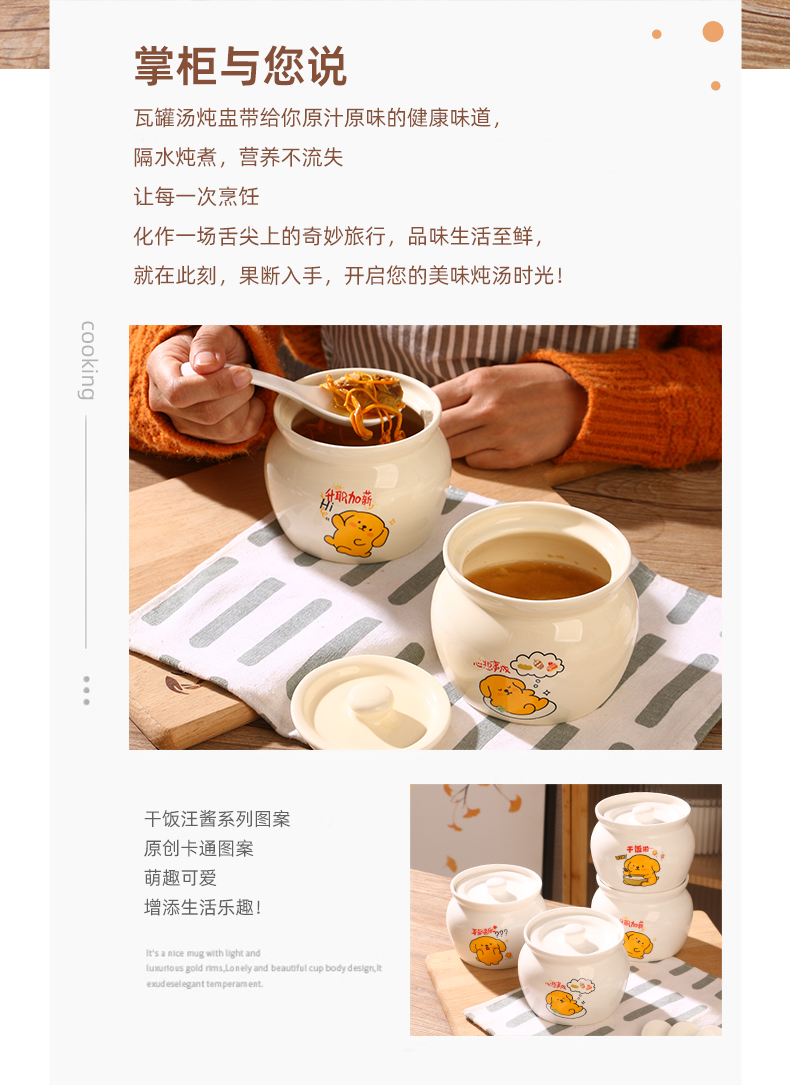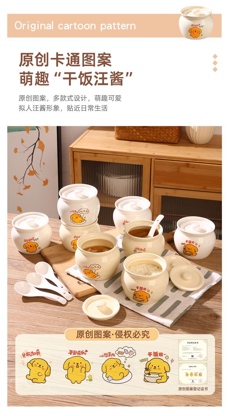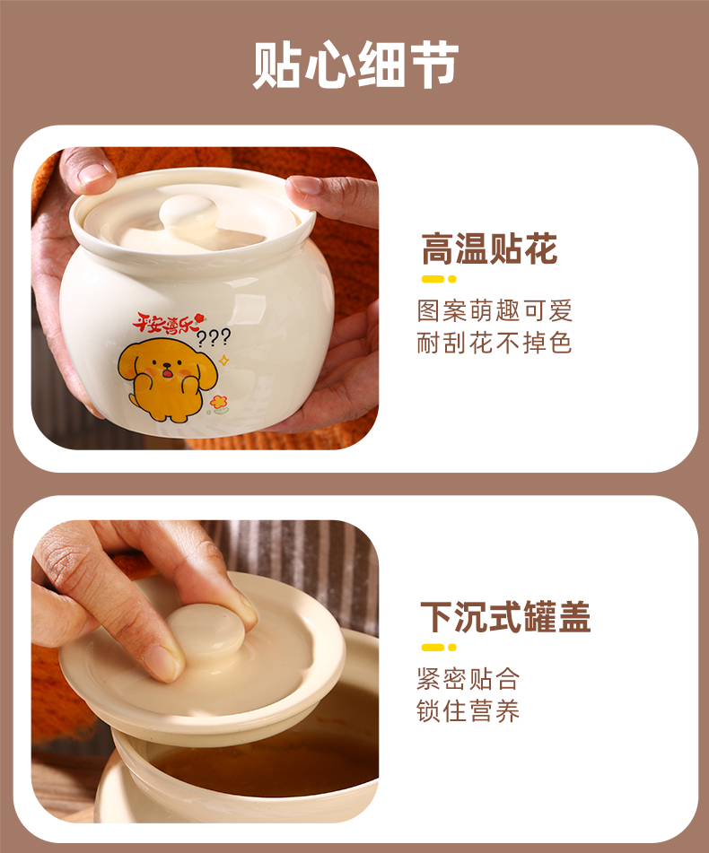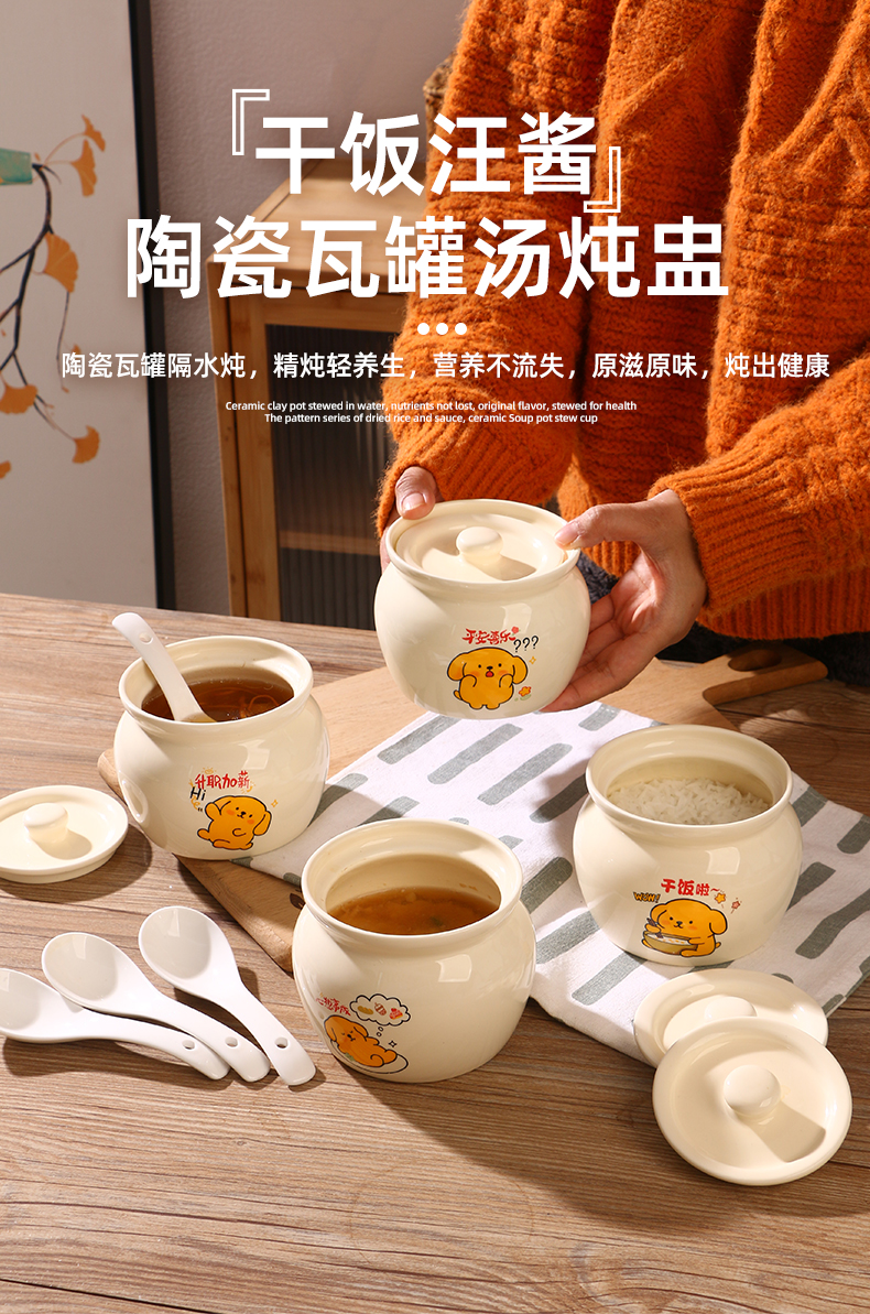 【奶黄汪酱炖罐】陶瓷瓦罐炖盅家用隔水炖煨汤带盖汤盅蒸蛋辣椒罐轻食