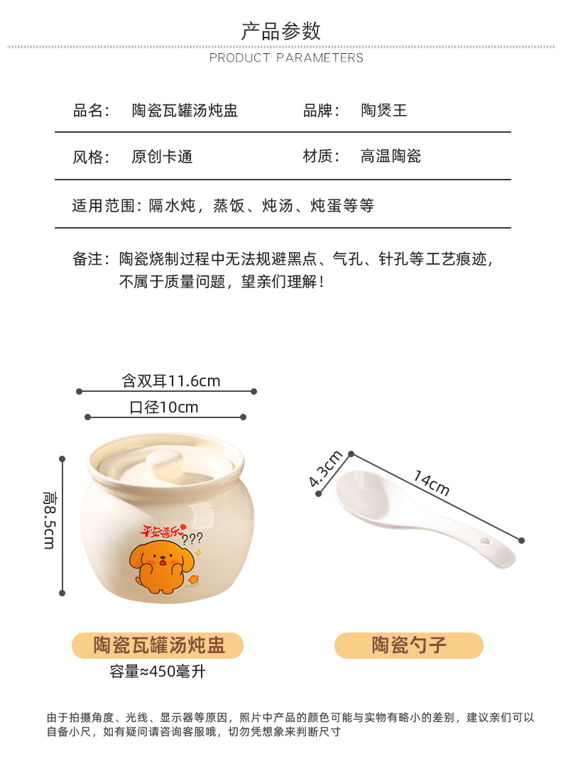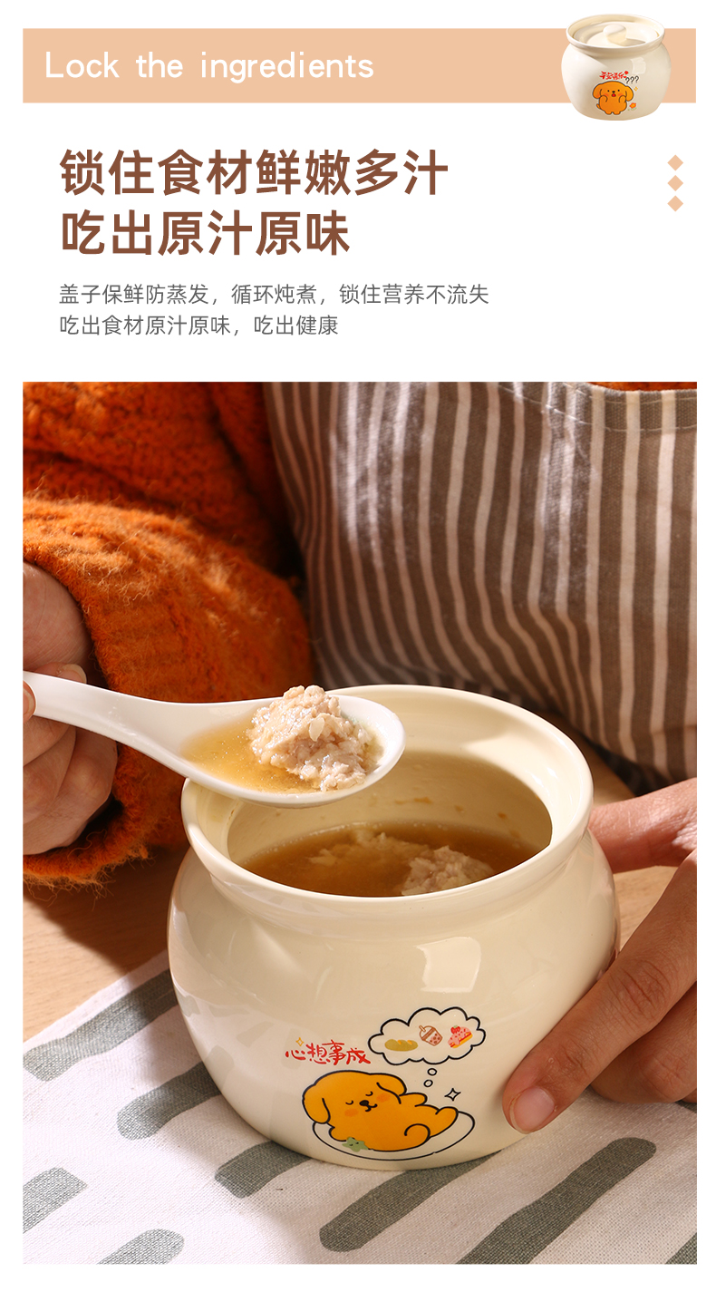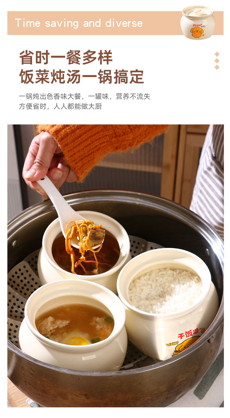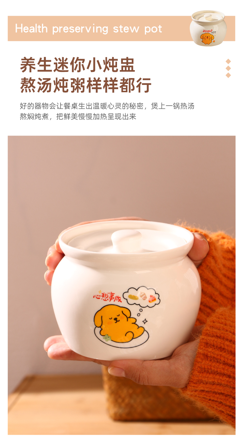 【奶黄汪酱炖罐】陶瓷瓦罐炖盅家用隔水炖煨汤带盖汤盅蒸蛋辣椒罐轻食