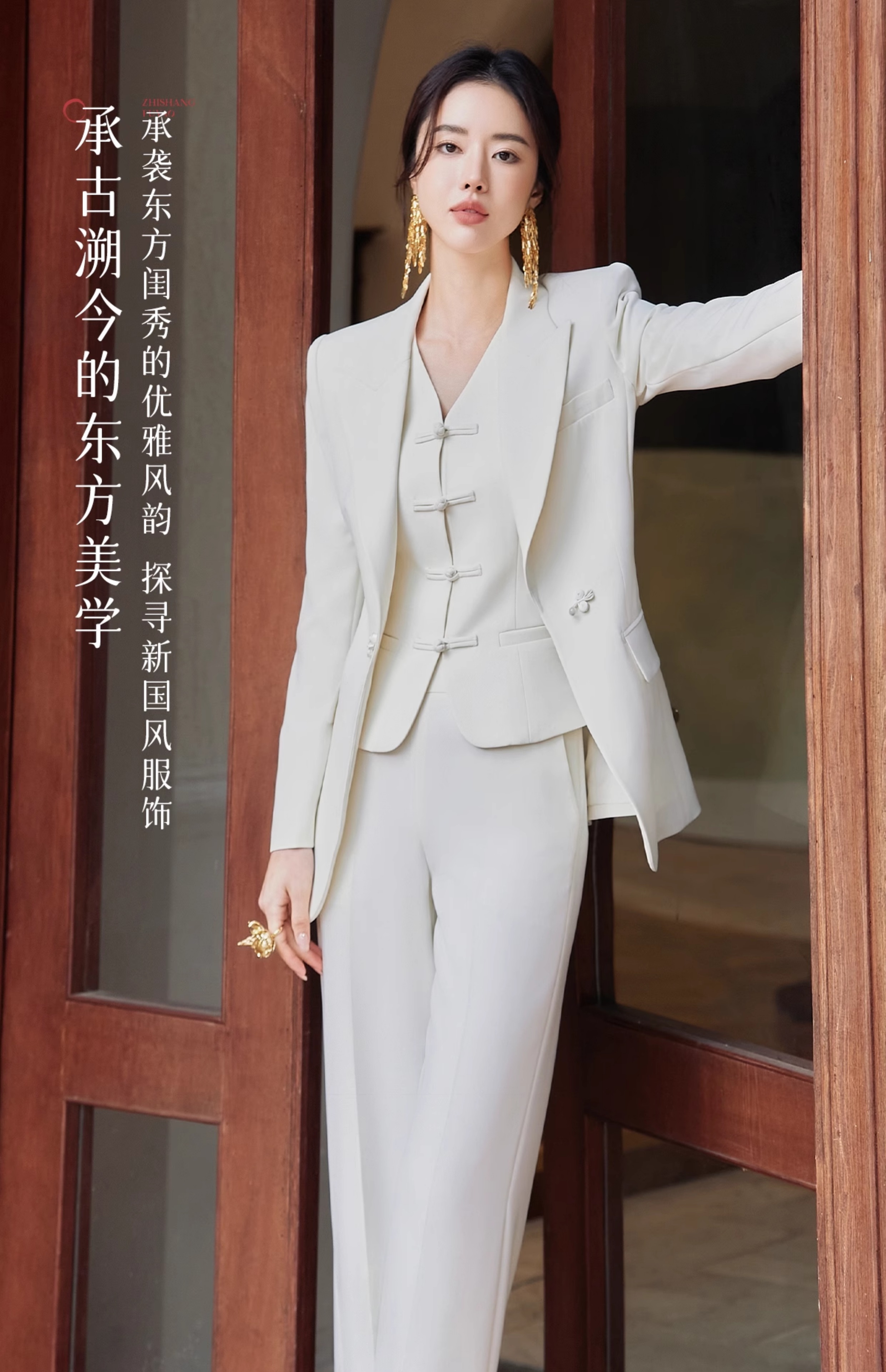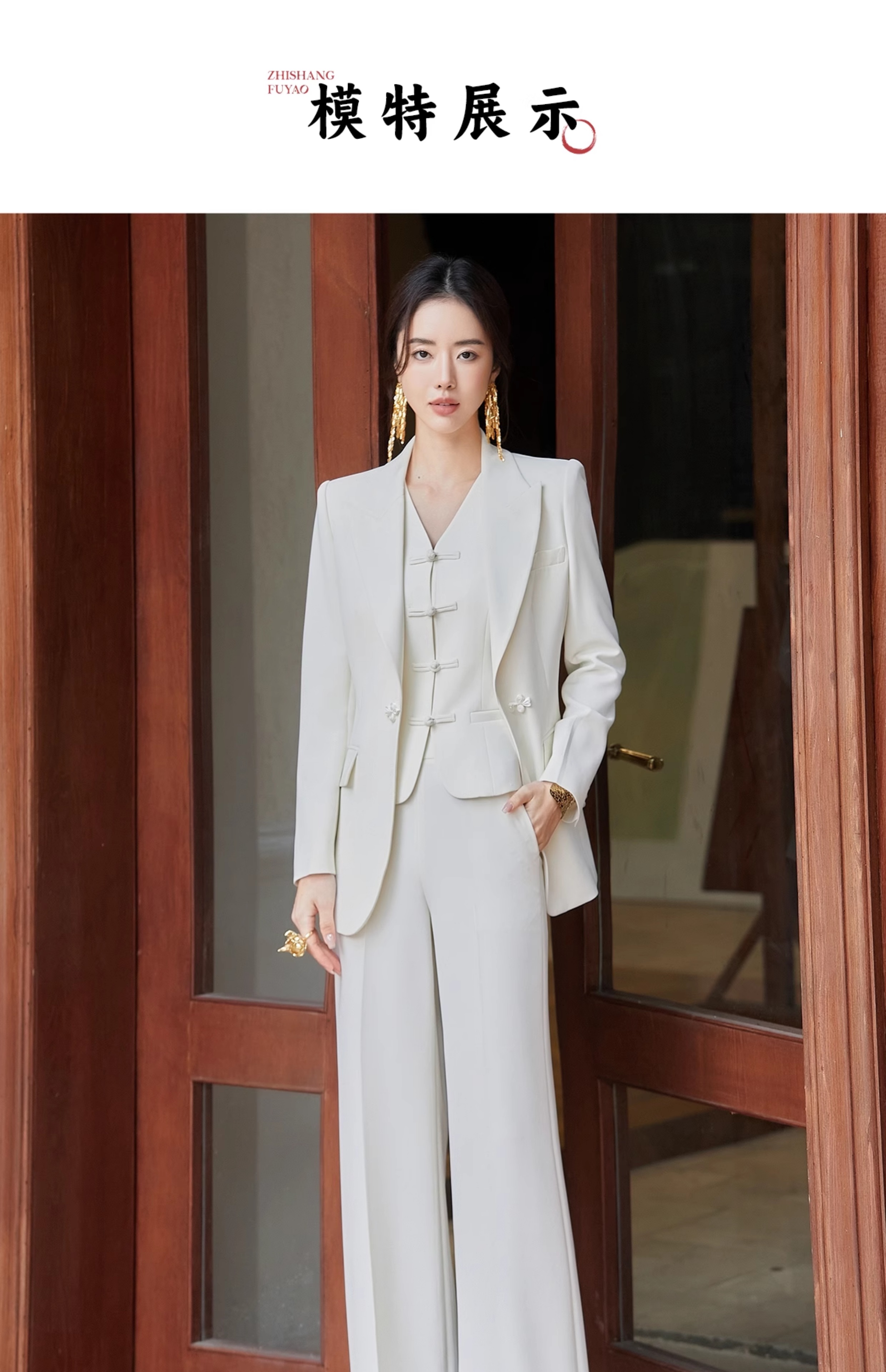 FUYAO扶摇 时尚套装女复古国风盘扣设计感西装马甲三件套工作服春