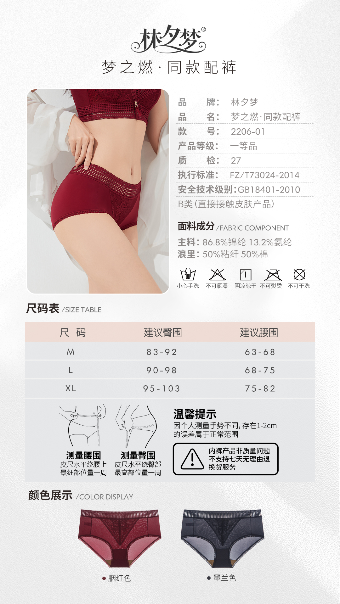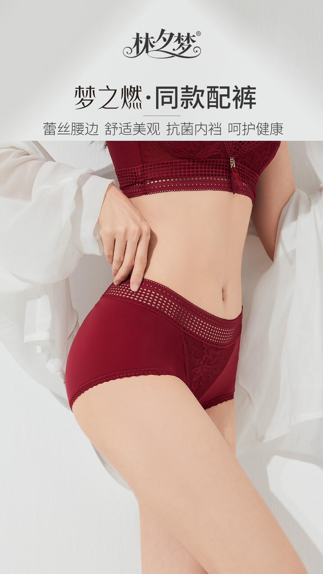【梦之燃·同款配裤】蕾丝腰边 舒适美观 棉质内裆 呵护抗菌 中腰版型 日常实穿 时尚拼接 性感百搭_2206-01