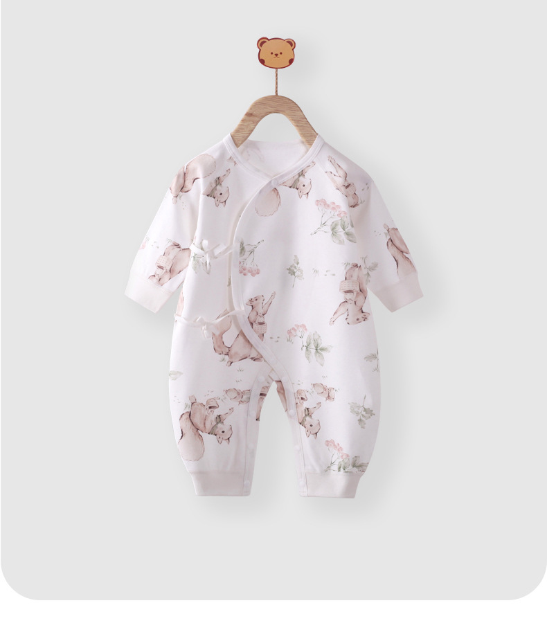 【新生儿纯棉无骨系带哈衣】a类无骨爬爬服宝宝连体衣婴儿衣服新生儿哈衣春秋长袖全棉睡衣