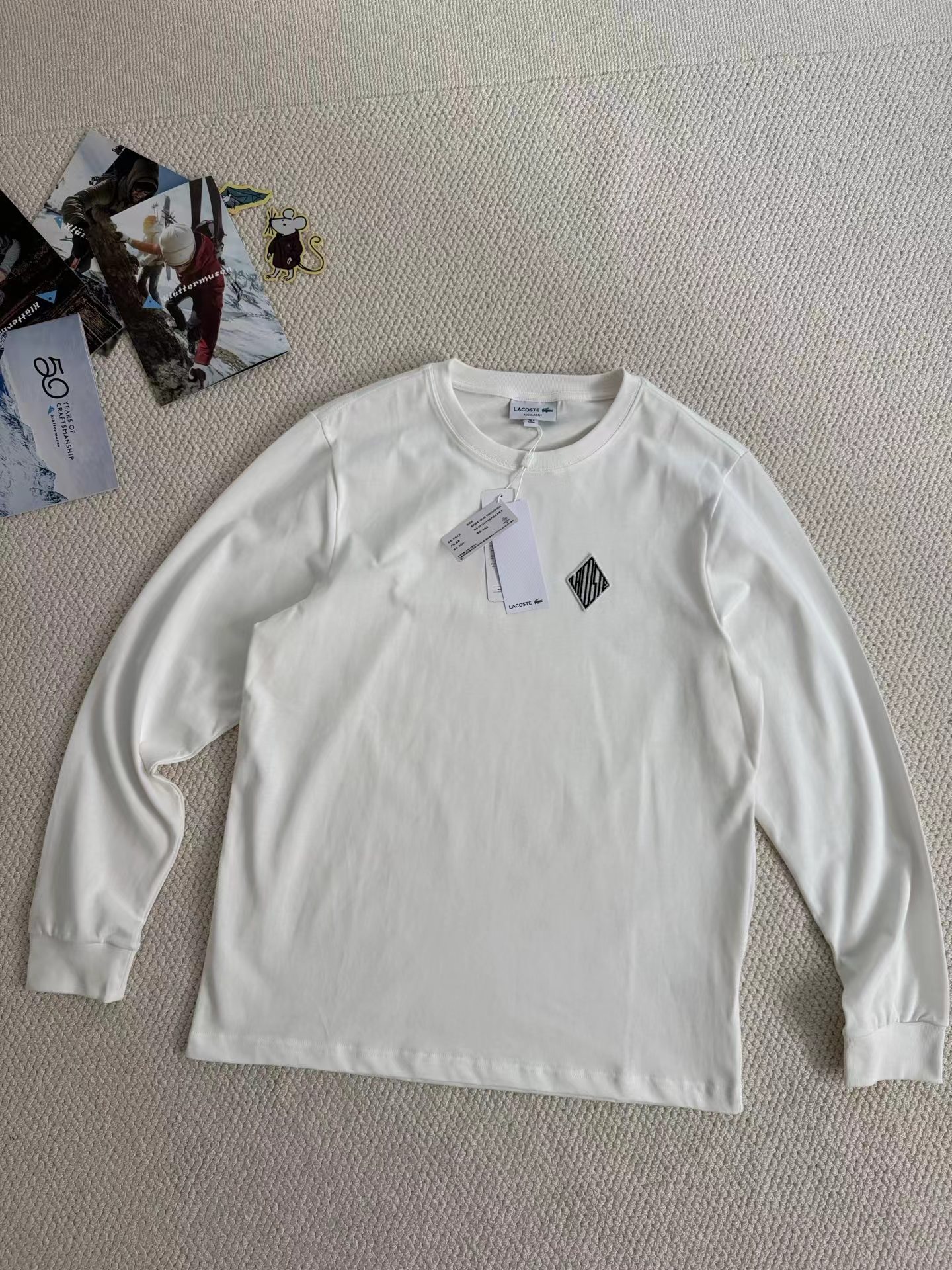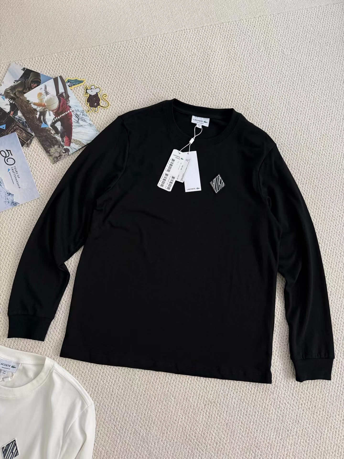 春季新款简约质感长袖T恤!以jing典重塑日常,用细节定义格调。材质升级:甄选100优质棉料,触感柔软亲肤,透气排汗,兼顾舒适与挺括,四季皆宜。设计巧思:圆领剪裁利落百搭,左胸菱形刺绣,低调彰显身份;暗藏法式jing致。 风格适配:黑白两色可选,无论是单穿打造利落造型,还是作为内搭叠穿层次,都能轻松适配通勤、休闲、运动等多元场景。不止是一件T恤,更是你从容不迫的日常态度。这件长袖T恤真的太懂男生了!100棉的料子贴身穿巨舒服,洗了也不容易变形。左胸的菱形刺绣LOGO真的戳我,低调又有辨识度。黑白两色闭眼入,单穿干净利落,叠穿也很有层次感,通勤、约会、运动都能穿,实用性直接拉满!甄选面料:100优质棉,柔软亲肤,透气排汗,久穿不易变形。百搭版型:jing典圆领,利落剪裁,黑白双色可选,轻松驾驭多种穿搭风格。场景无界:适配通勤、休闲、运动等多元场景,打造不费力的gao级感。