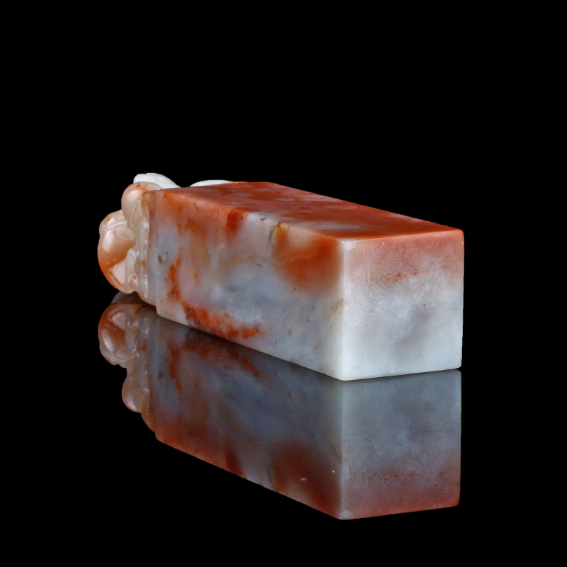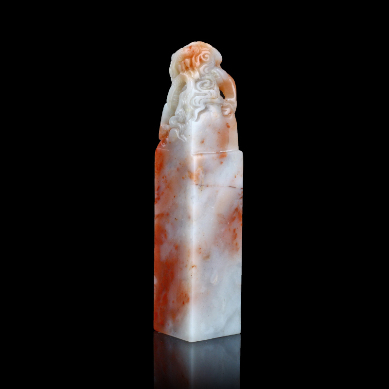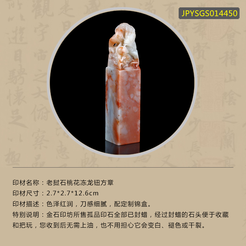 孤品014450:老挝石桃花冻龙钮方章-2.7*2.7*12.6cm