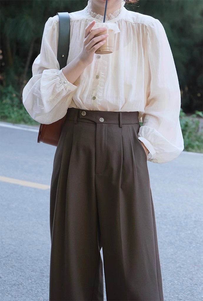 裁缝学苑AQ440法式复古蕾丝花边领衬衫纸样女装灯笼袖长袖上衣样板