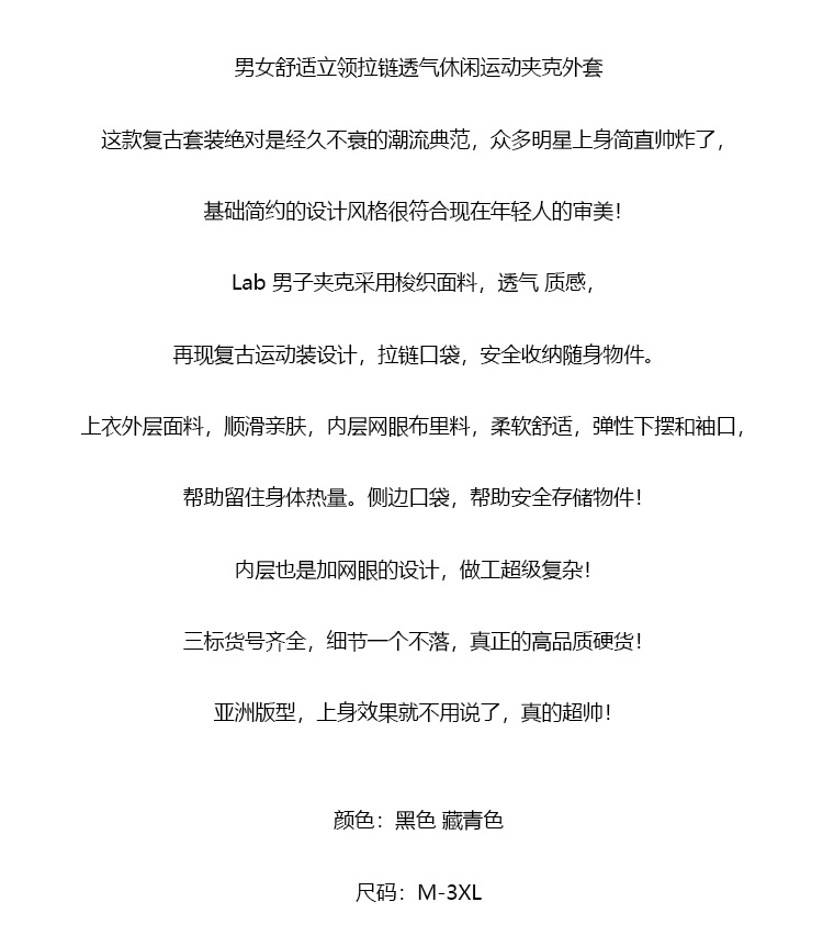 【cyz1】男女春款舒适立领拉链透气休闲运动夹克/外套!!
