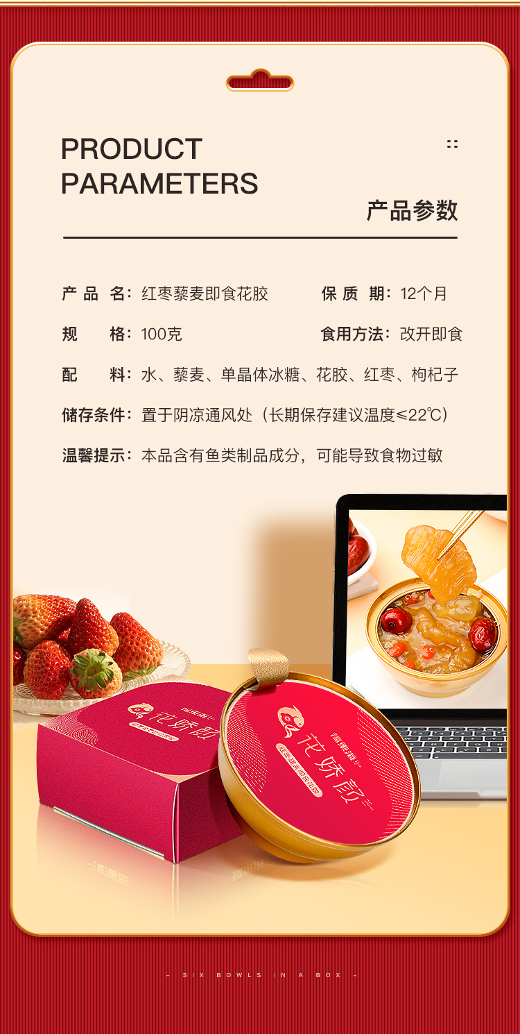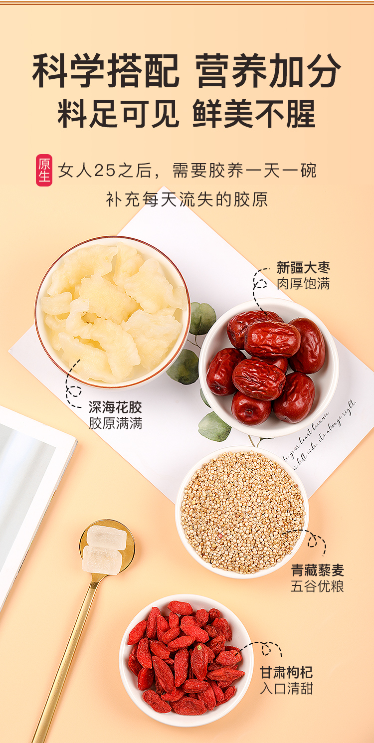【微信会员优惠】拍1发12 比护肤品面膜还管用!即食!糯糯唧唧 真的太好吃了!红枣藜麦即食花胶100克/碗