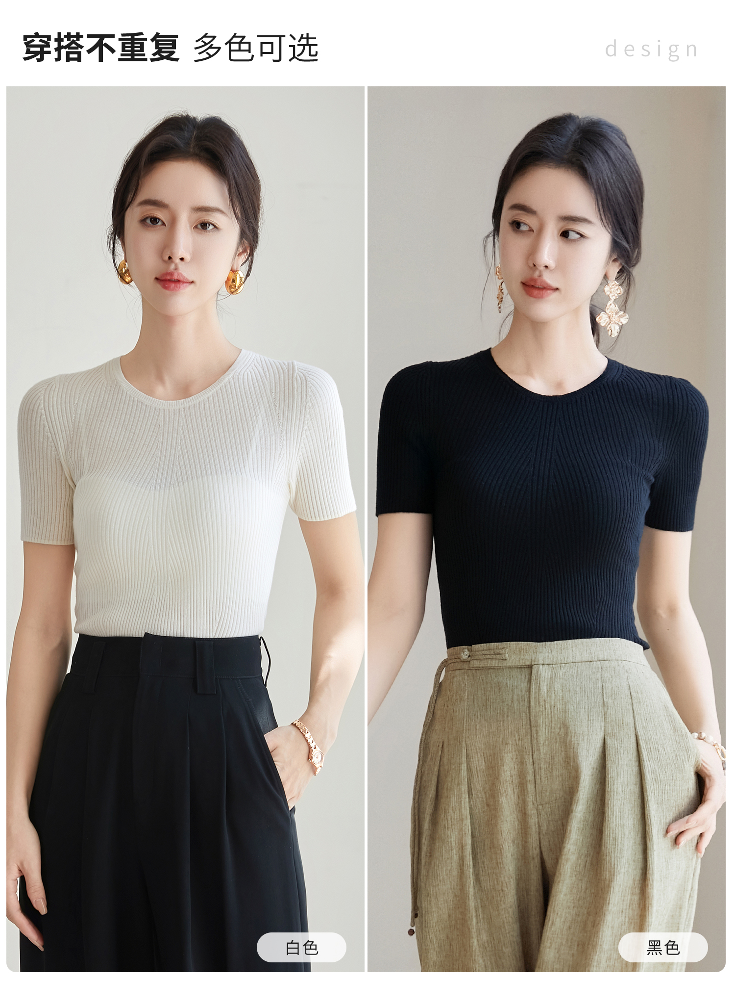 FUYAO扶摇 2025夏季天丝针织T恤女圆领短袖小衫修身显瘦短袖上衣