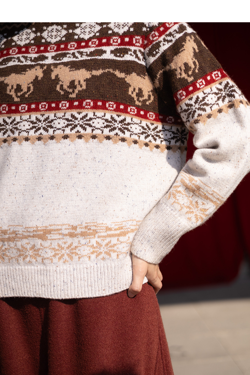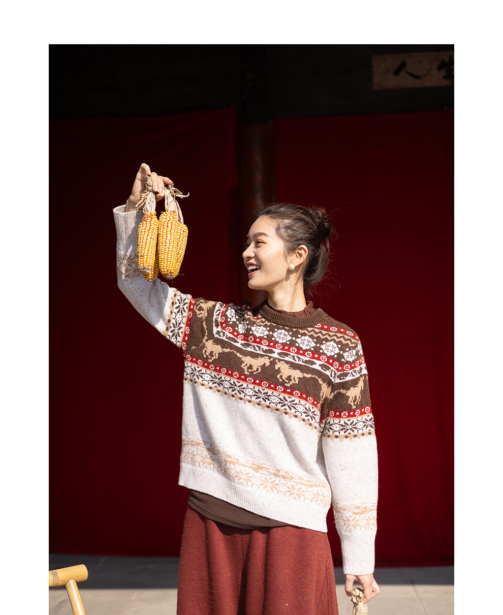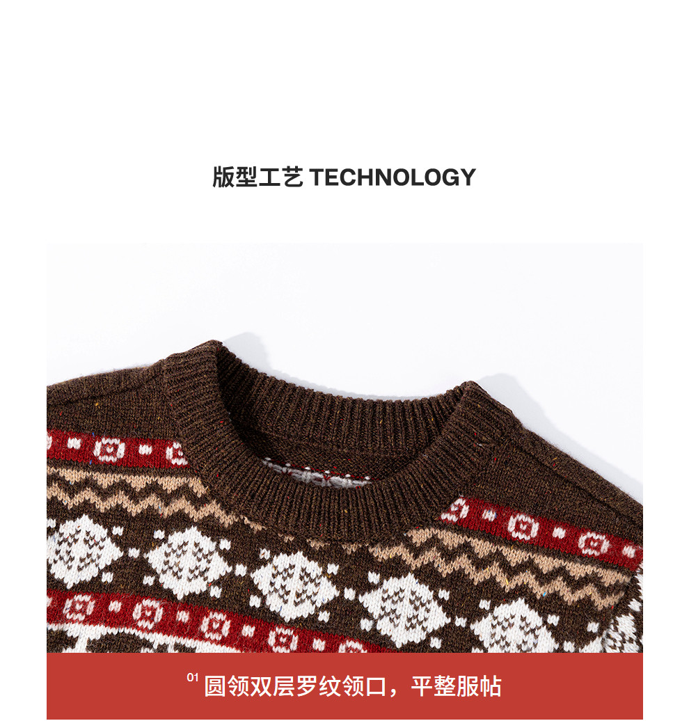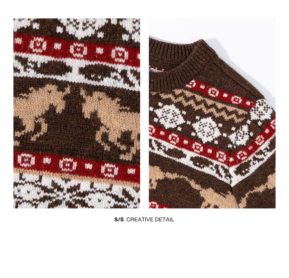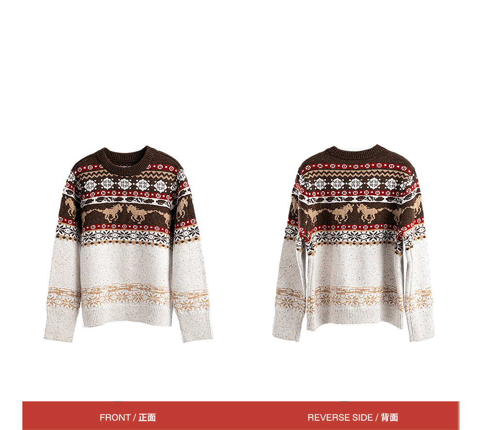 特绽放080朵/马年提花全羊毛圆领长袖套头毛衣新款设计感文艺毛衫