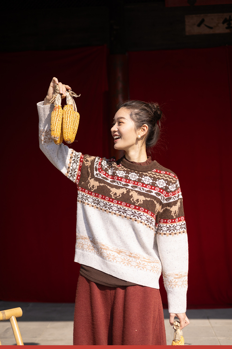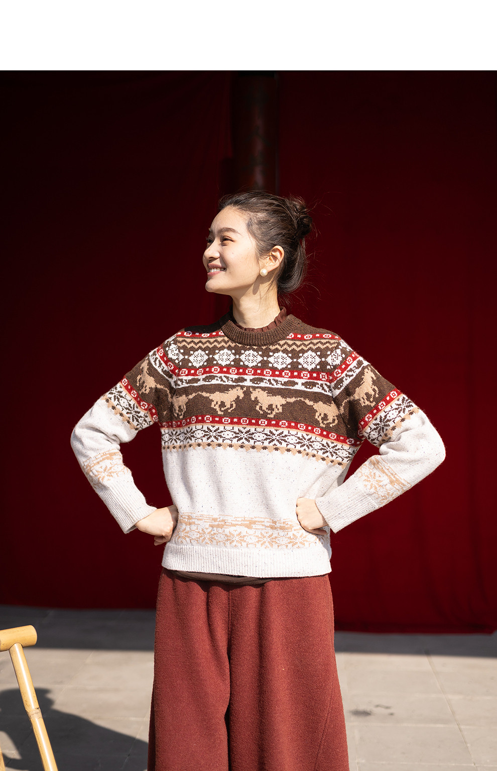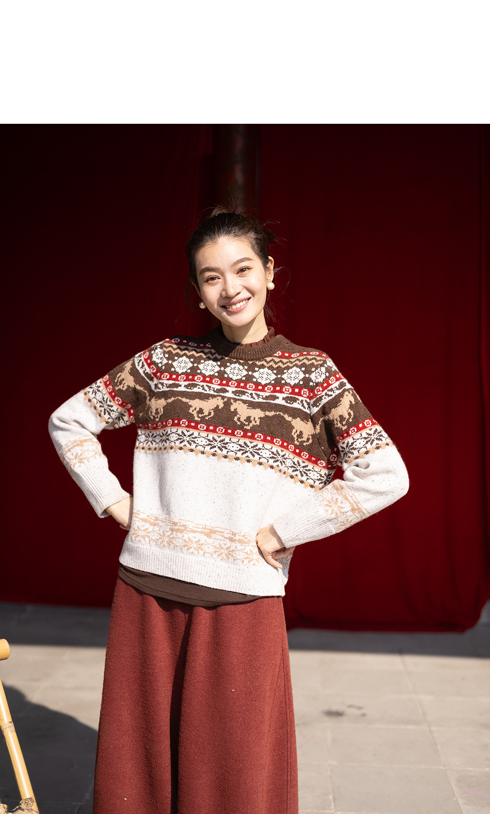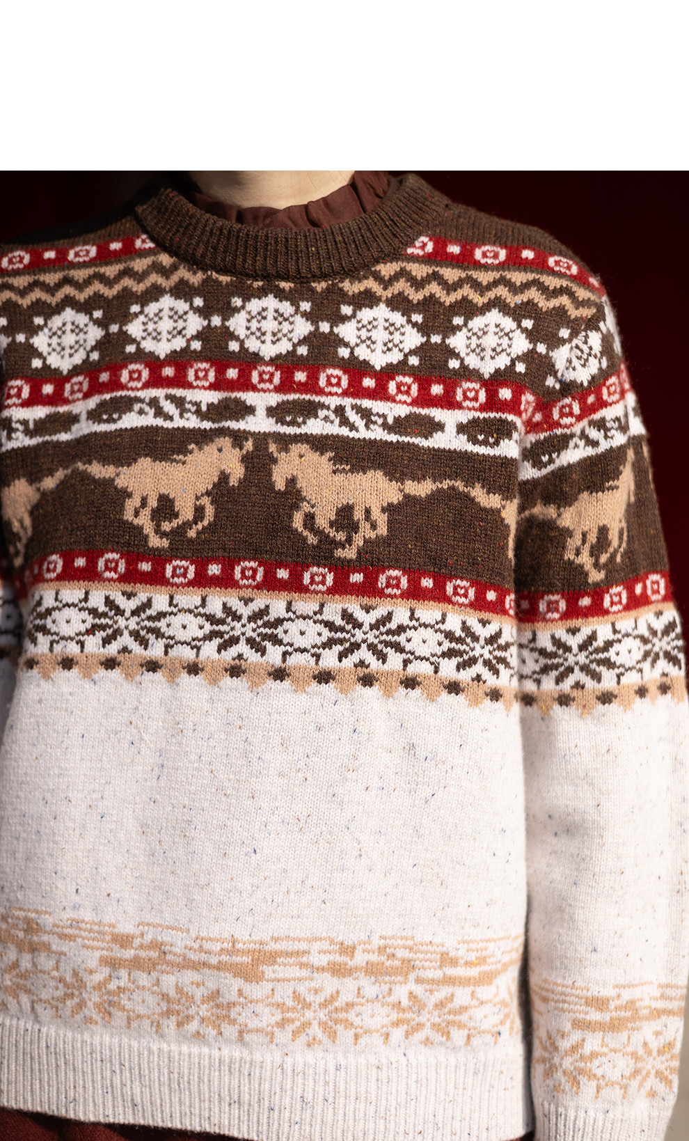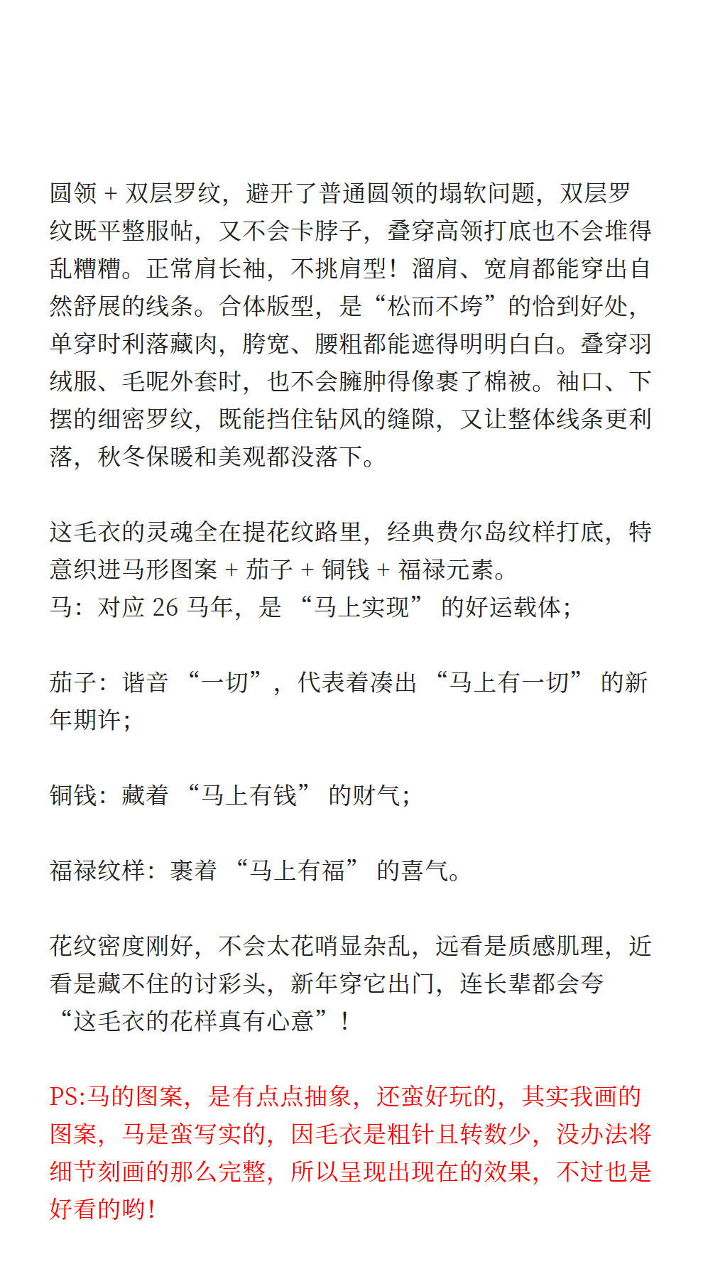 特绽放080朵/马年提花全羊毛圆领长袖套头毛衣新款设计感文艺毛衫
