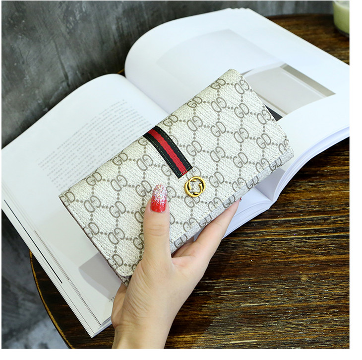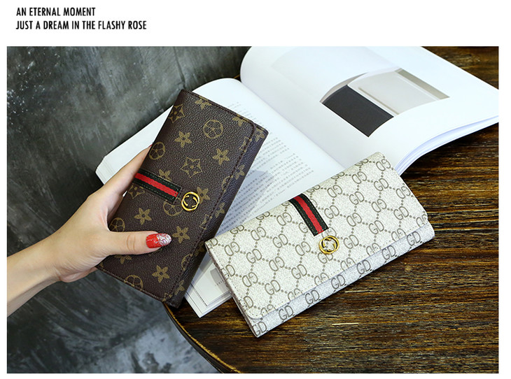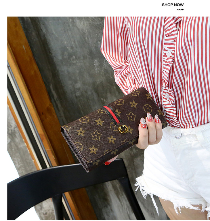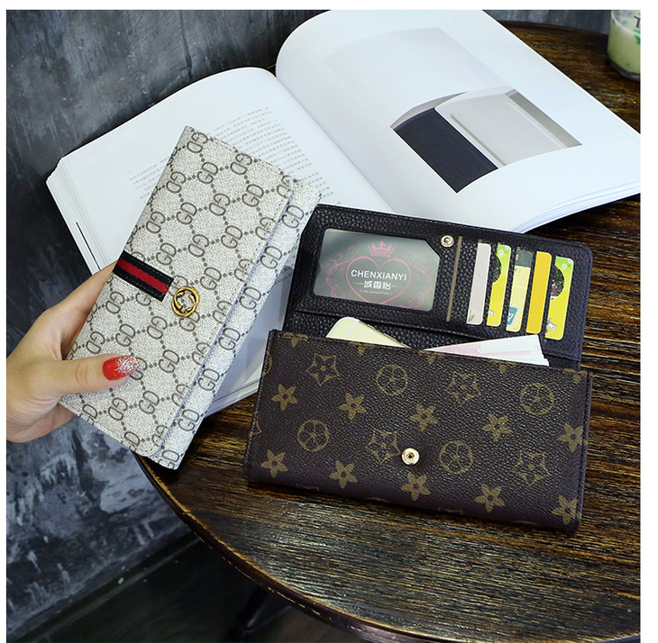 新款女长款大容量手拿包卡包搭扣皮夹卡包手机钱夹