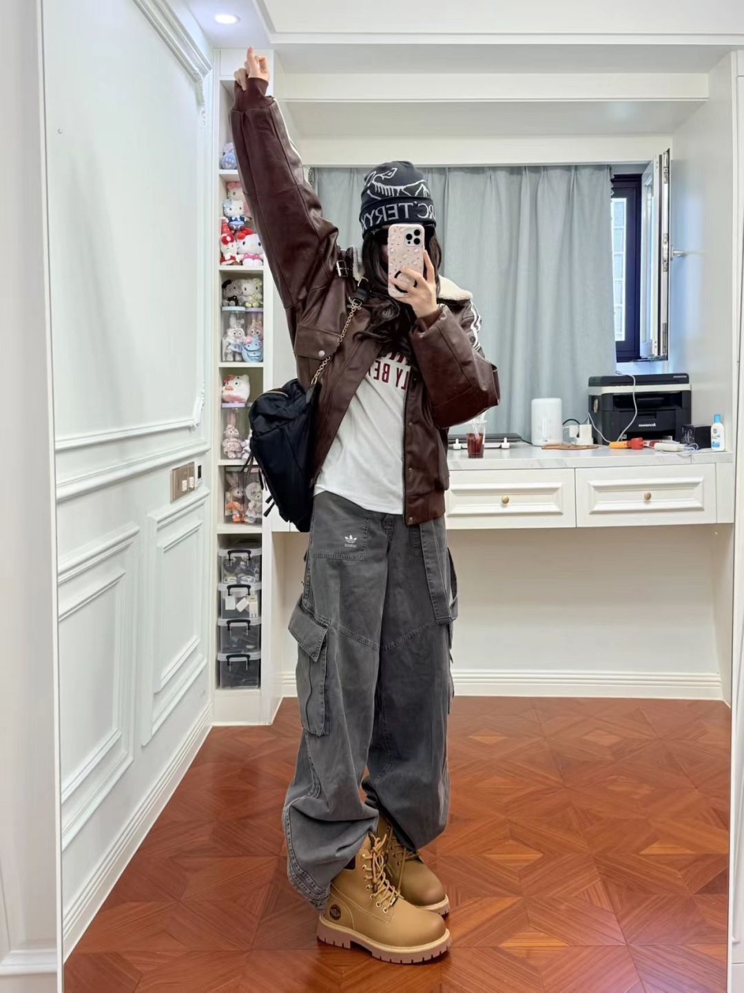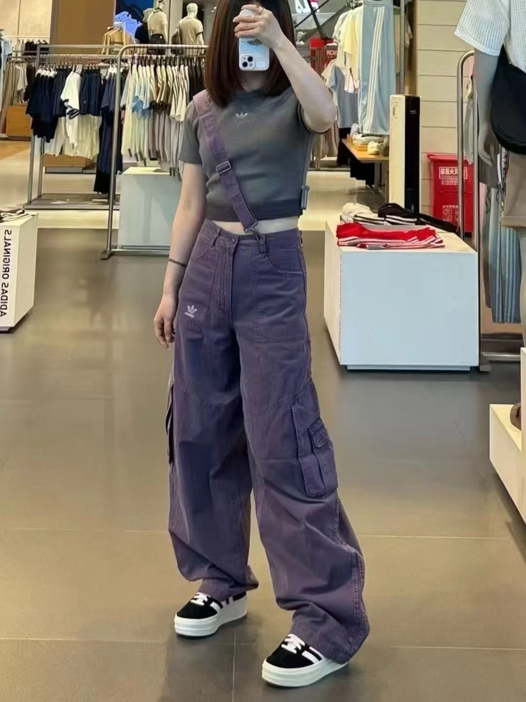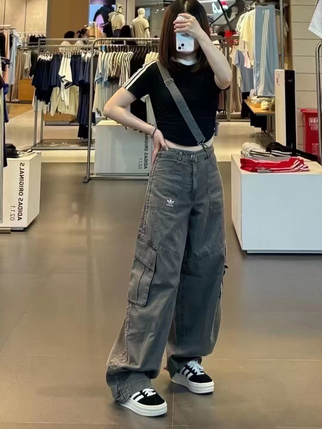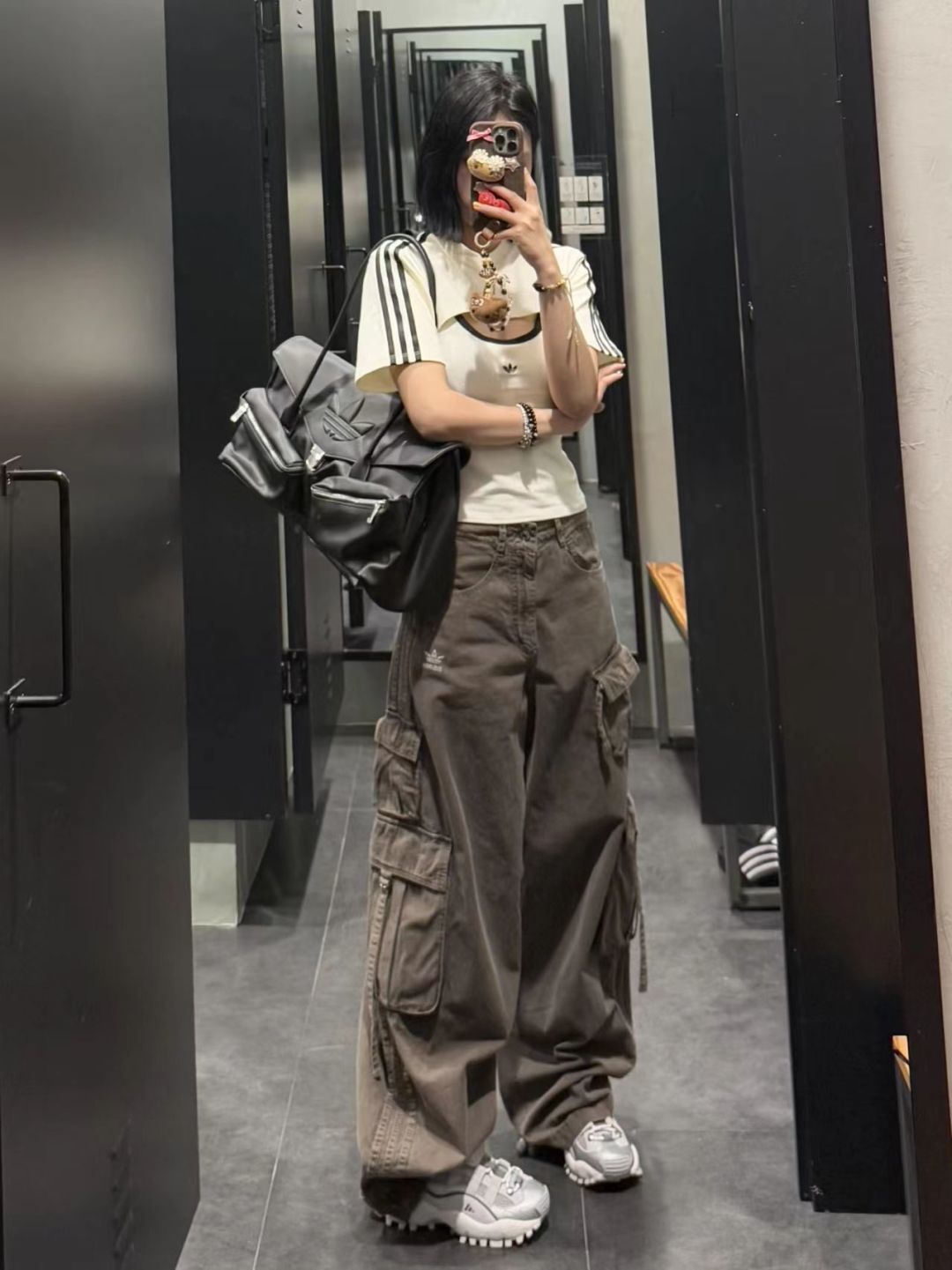 高腰设计拉长比例,口袋细节超有型,搭配短T/卫衣都超A!