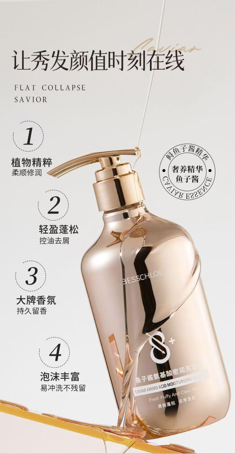 【VIP-G】芭思蔻 鱼子酱氨基酸密润洗发水 500ml /芭思蔻 鱼子酱氨基酸臻润发膜 500ml