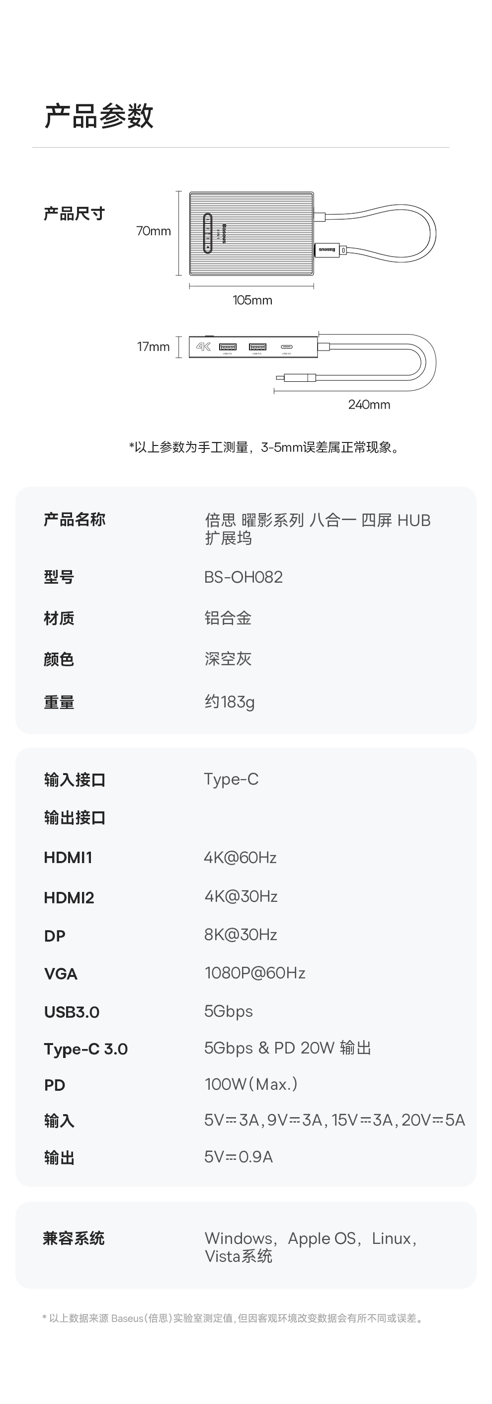 倍思 5V/2A充电头 自适应安卓、苹果及各类USB周边设备