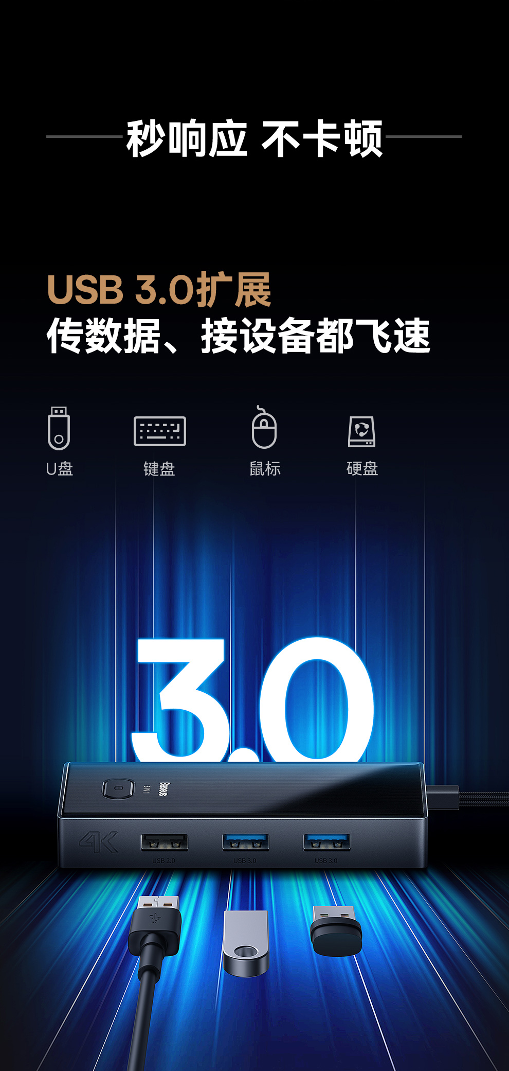 倍思 优胜系列快充数据线USB to M+L+C 3.5A 1.5m