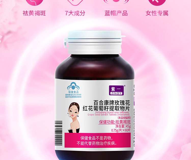 【3瓶装】紫一玫瑰花红花葡萄籽提取物片