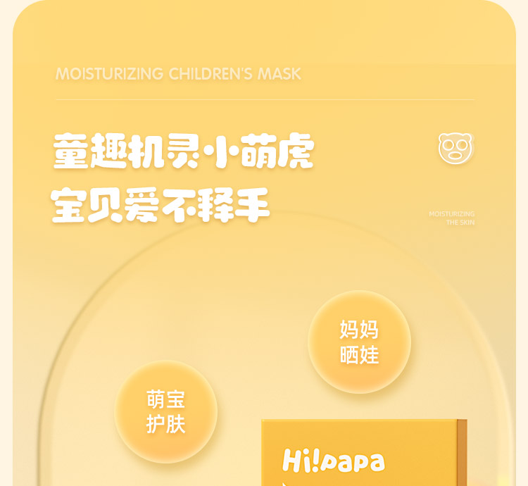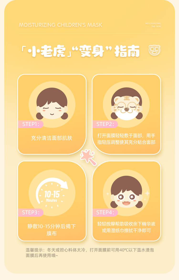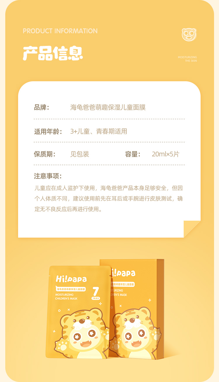 【品牌直供】海龟爸爸萌趣保湿儿童面膜 小老虎面膜~膜布轻薄服帖,造型可爱,增添萌宝护肤乐趣 搭配透明质酸钠及海藻精粹1护肤成分,给予肌肤补水保湿