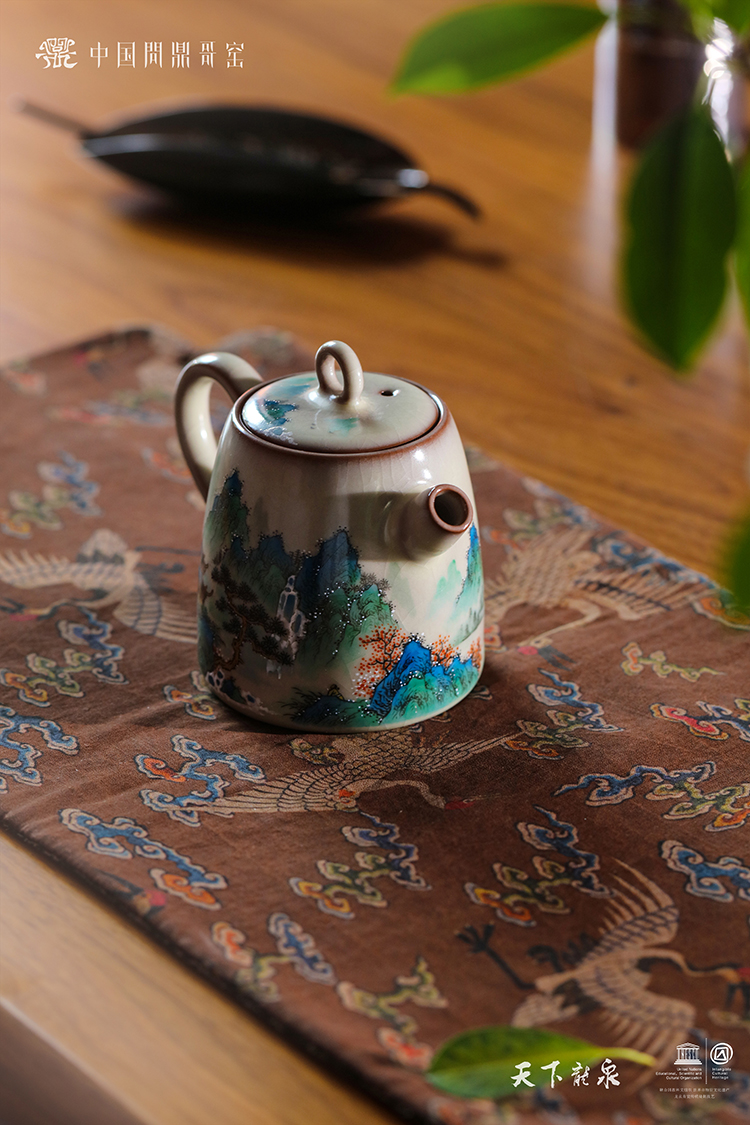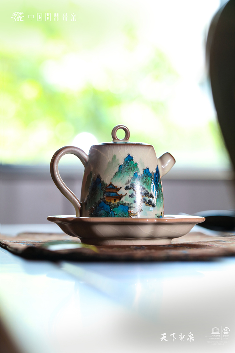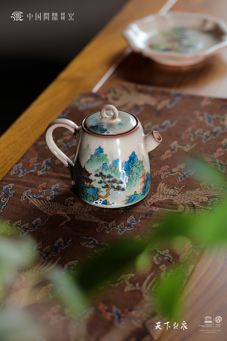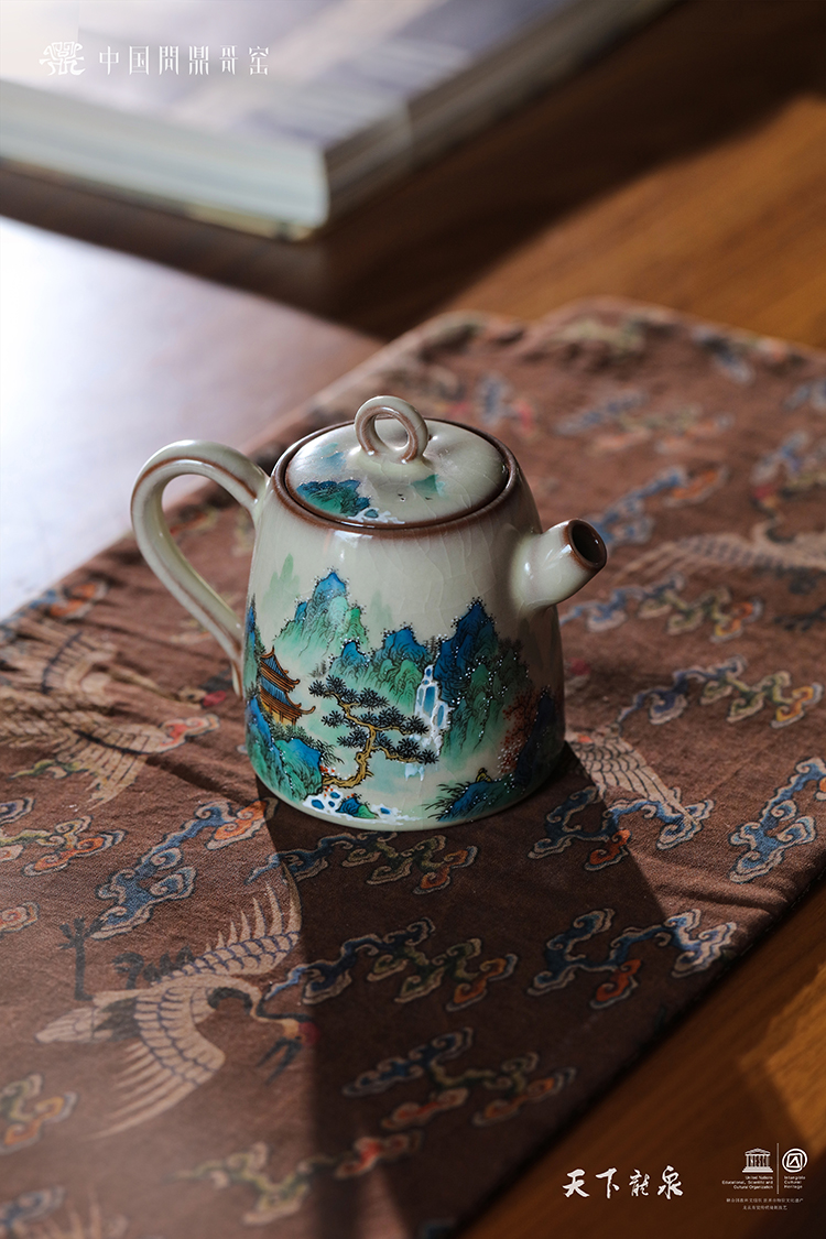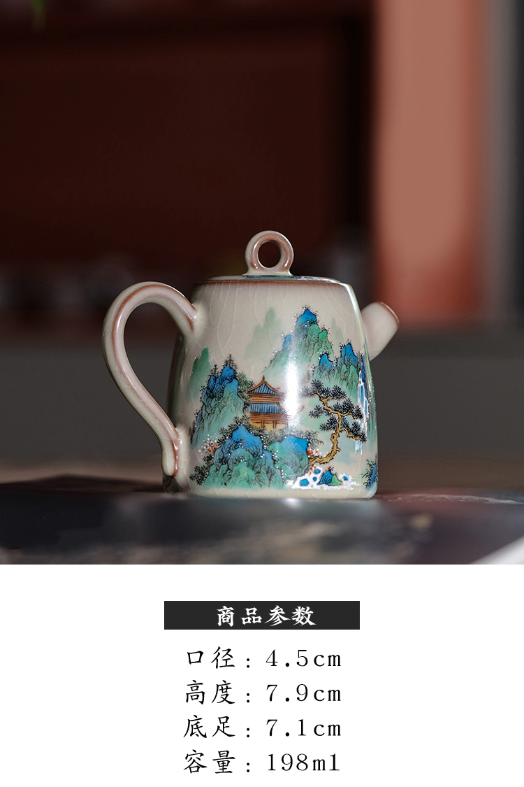 问鼎哥窑致巧款小秦权壶(青绿山水)