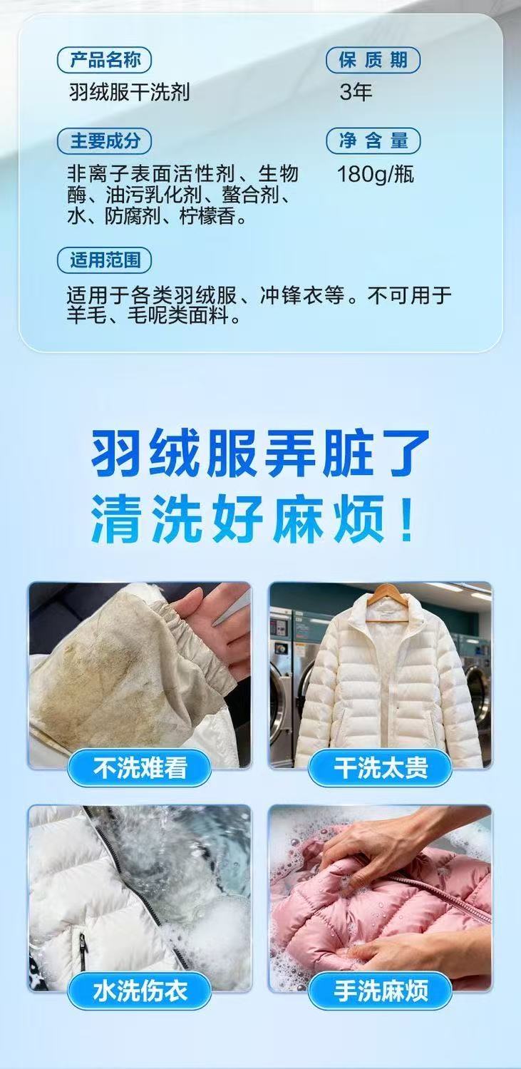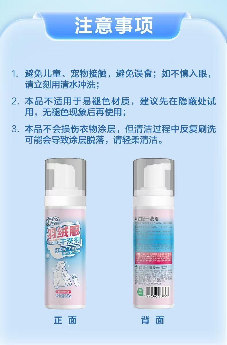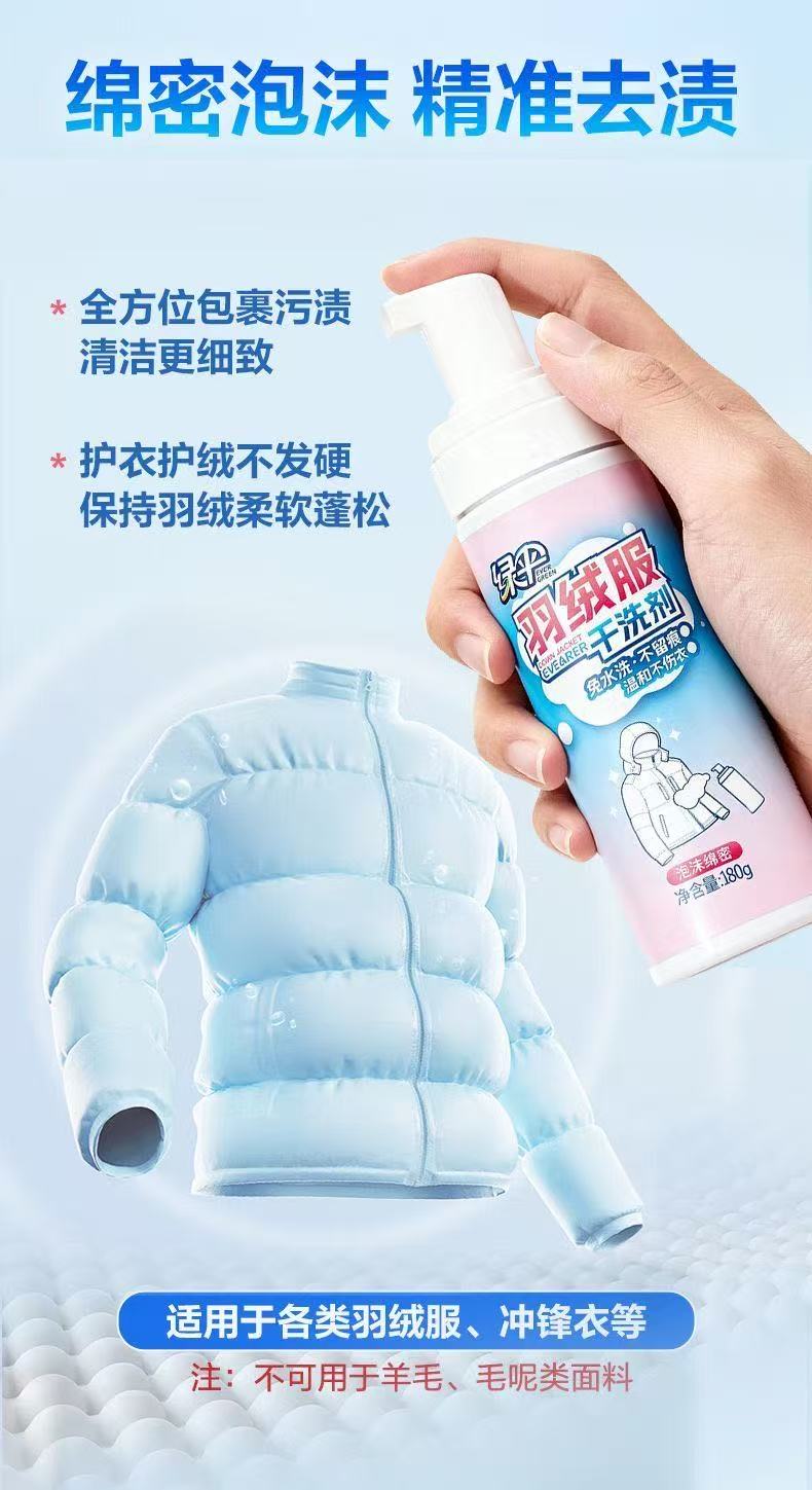 绿伞羽绒服干洗剂深层去污温和不伤衣免水洗不留痕