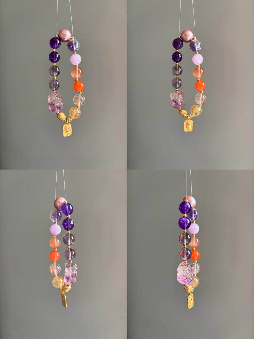 📐:金发晶/铜发晶/红兔毛/紫锂辉石/紫兔毛/爱迪生珍珠/紫水晶/萤石貔貅