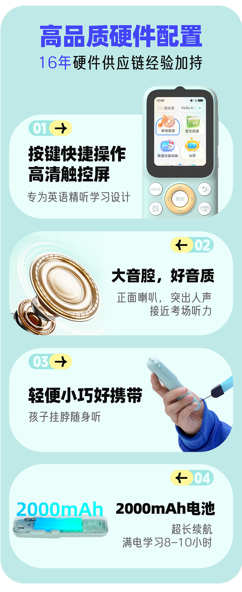 倾听者K9pro英语小初高AI听力学习机口语跟读复读机