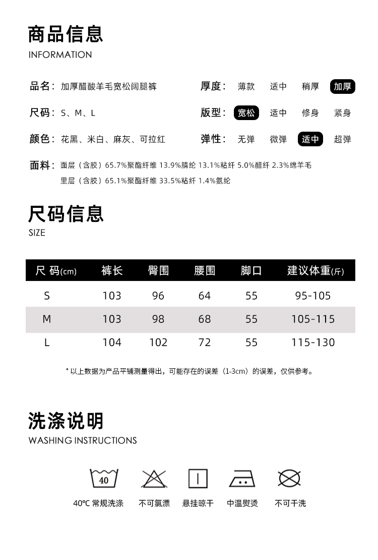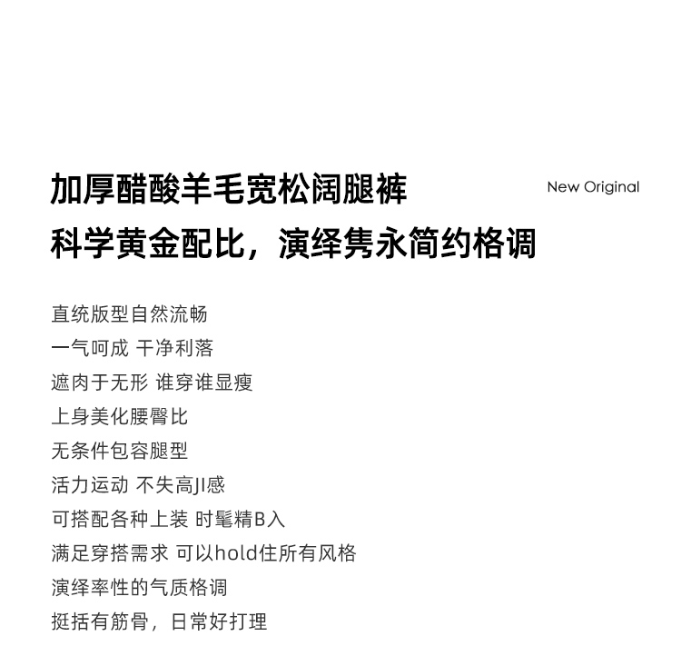 weyo秋冬款女加厚醋酸羊毛宽松阔腿裤休闲西装裤880051、880052