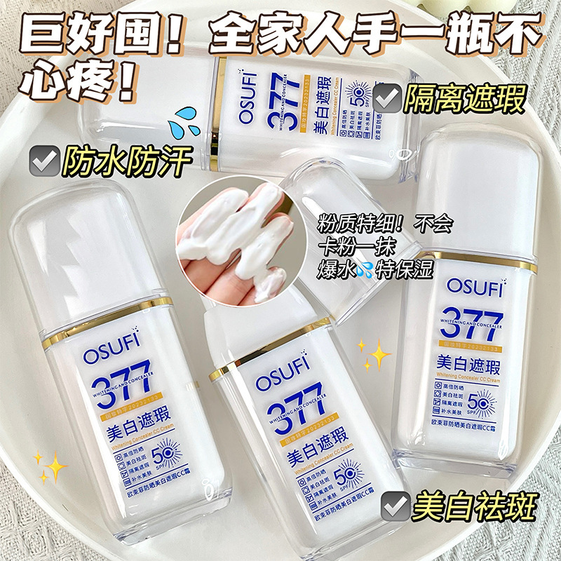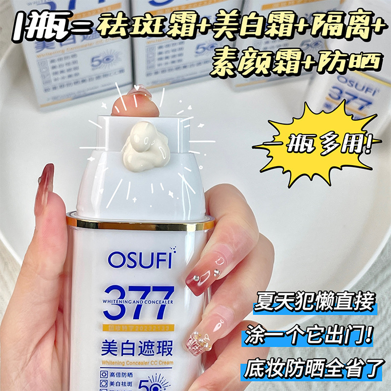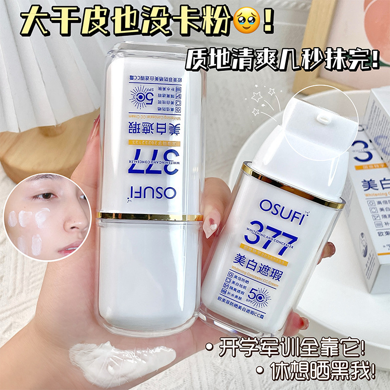 【伪素颜bi备❗️UPF50+377美白遮瑕CC霜】宝藏防晒一瓶多用,早八隔离遮瑕,防水防汗,提亮肤色不假白,隔离紫外线防晒霜素颜霜QQ