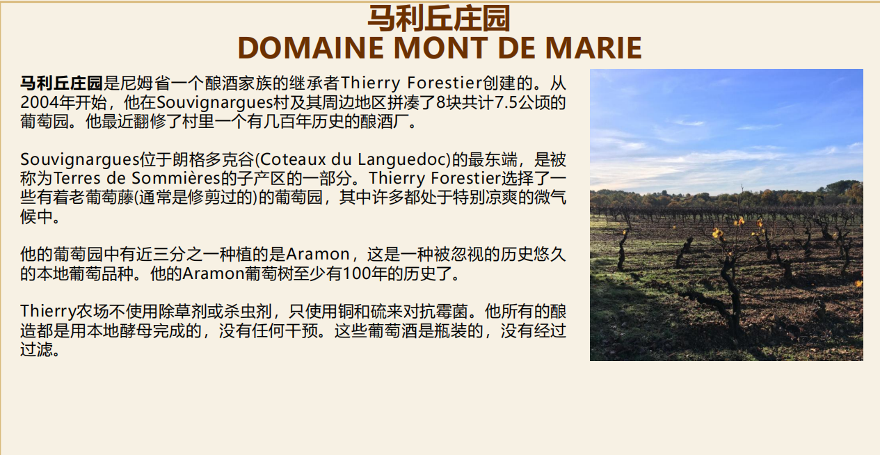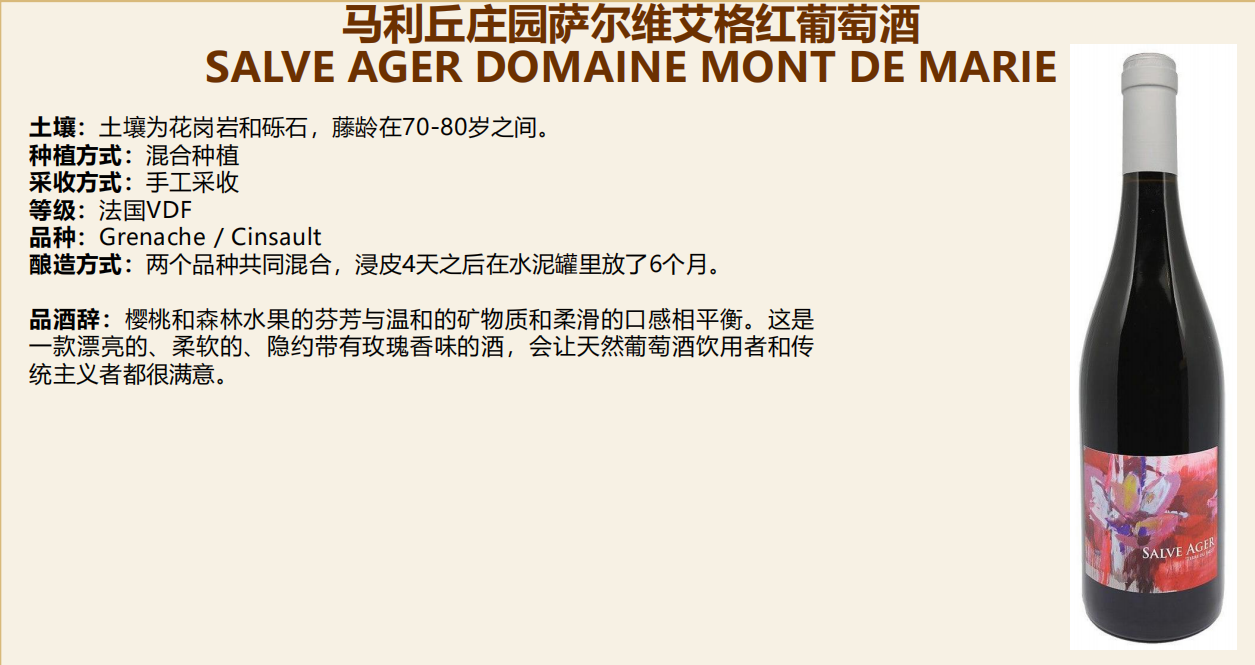 【老藤自然派!果香轻盈!】Salve Ager Domaine Mont De Marie 2020 750Ml