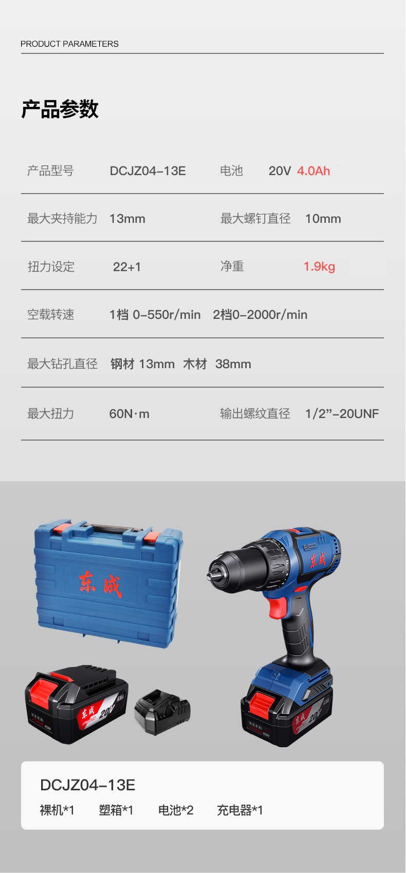 20V无刷双速起子电钻(东成)/4.0Ah双包/塑箱 DCJZ04-13E