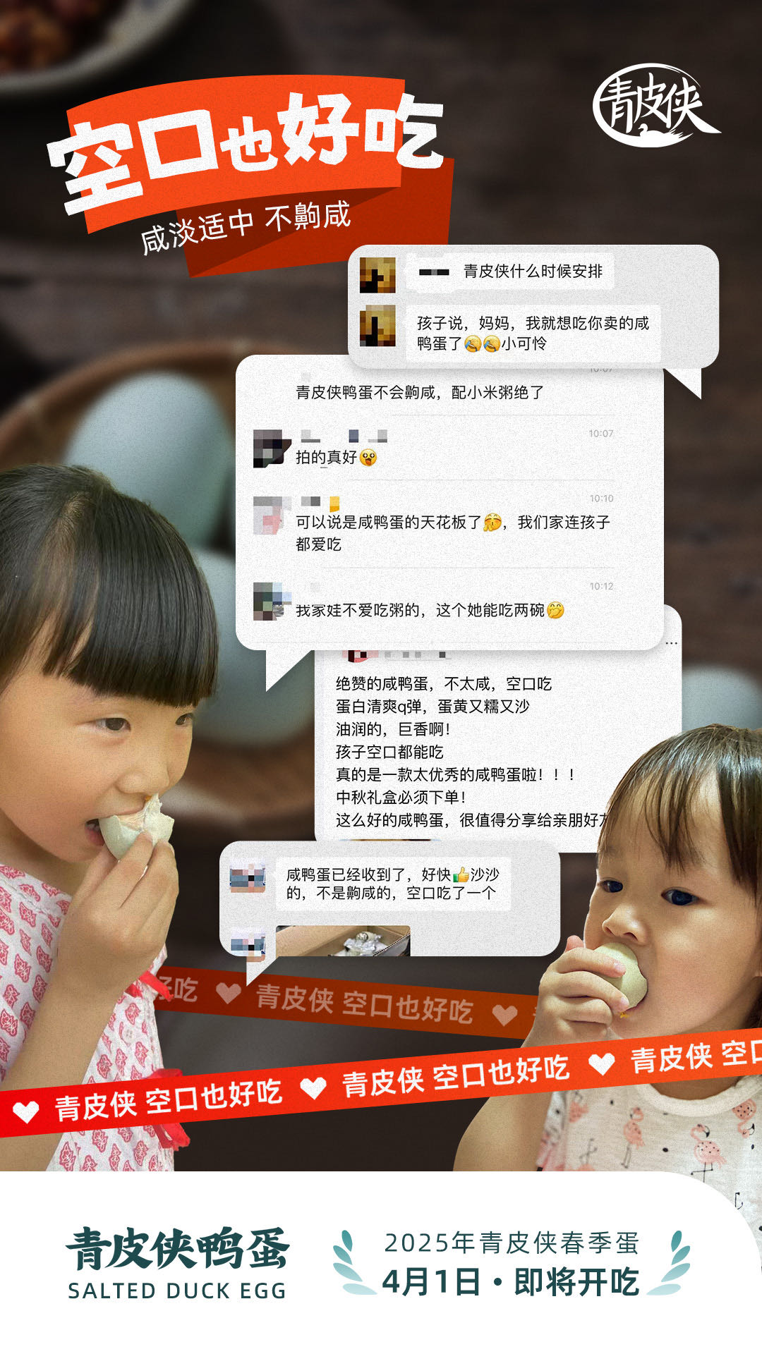 ⚠️关于口感咸淡的说明:青皮侠使用盐分较少,但是过分少量用盐会造成蛋黄无法翻沙流油,所以我们努力寻找这其中的平衡点。但对于一些口感淡的朋友来说,可能吃起来仍然感觉咸度大了,这个时候就不要空口吃了,配粥配主食都是不错的选择。