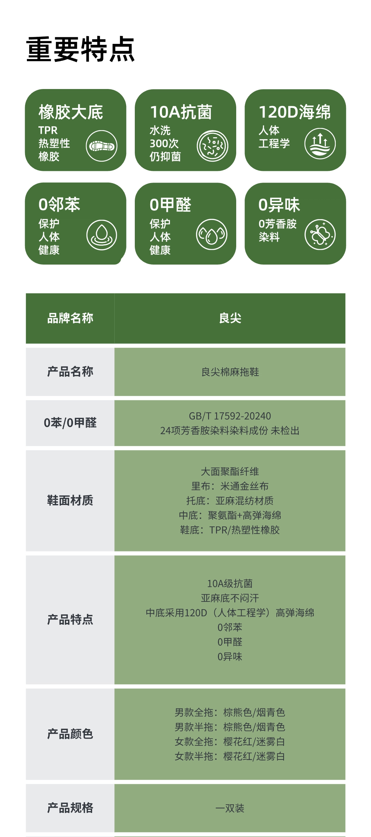 [屁侠推荐]良尖 男女同款棉麻拖鞋 半拖/全拖 天然棉麻新料 10A抗jun 四季可穿不闷脚 4层120D高弹海绵鞋底贴合足弓 TPR防滑大底