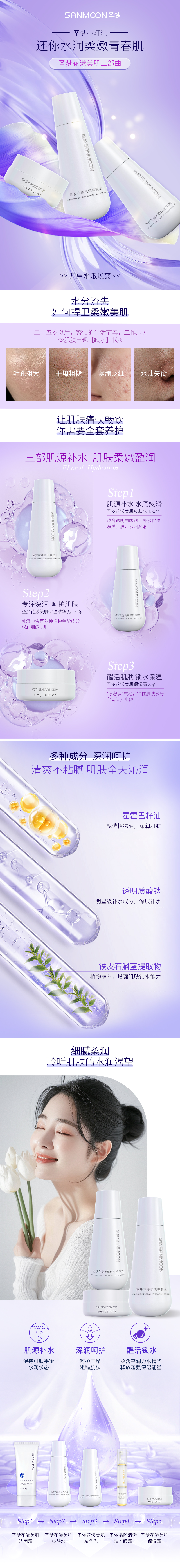 【买1到手7件】花漾美肌保湿套装(花漾美肌爽肤水150ml+花漾美肌保湿霜25g+花漾美肌精华乳100g)