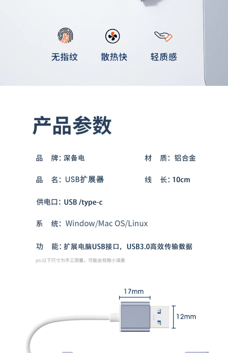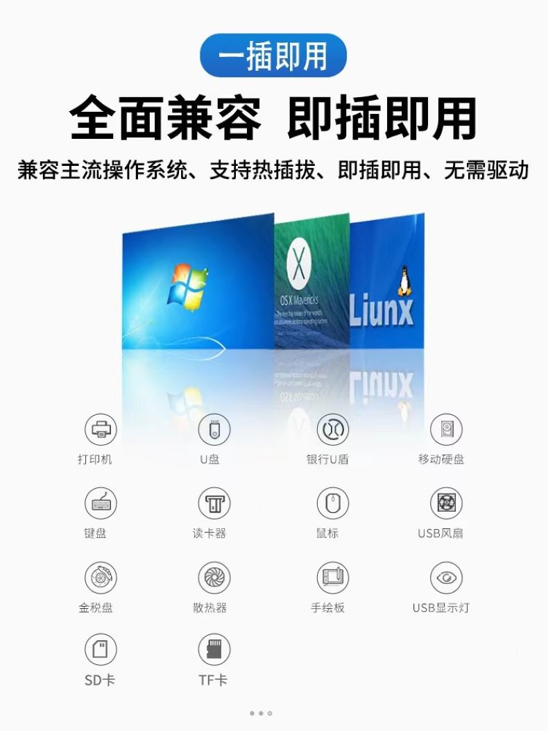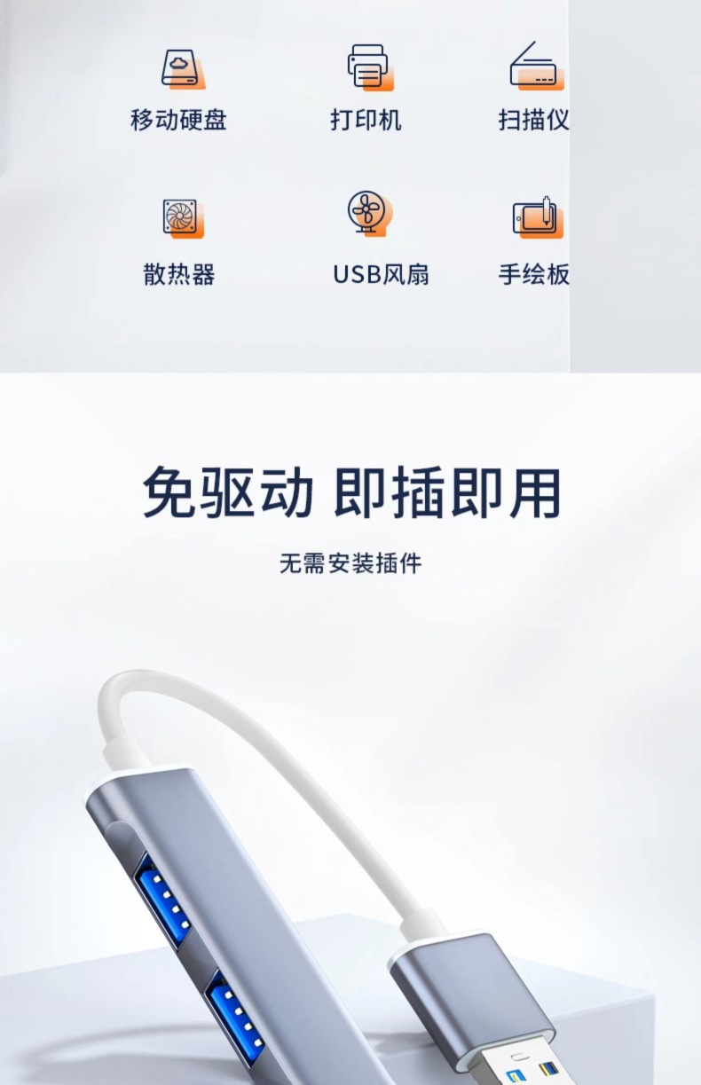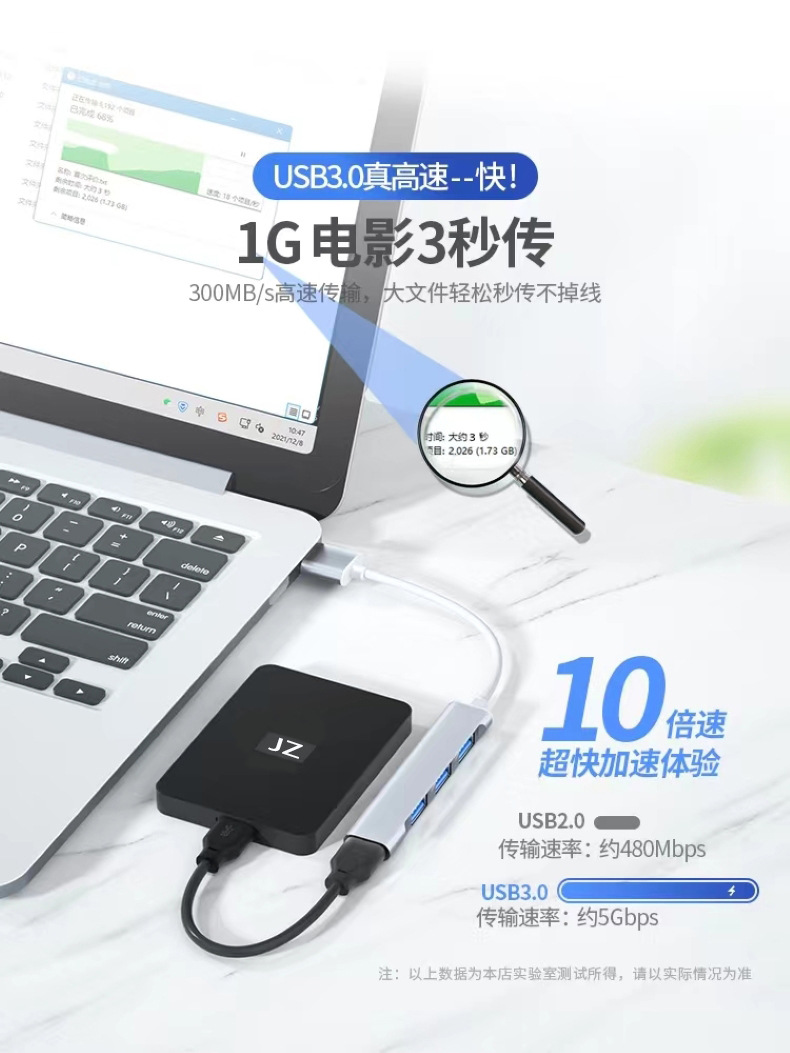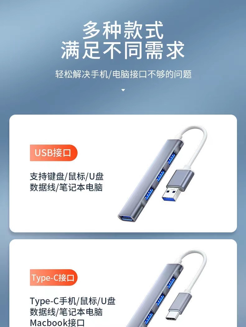 USB3.0/type-C 高速拓展坞电脑集线器车载分线器四合一HUB拓展坞/个