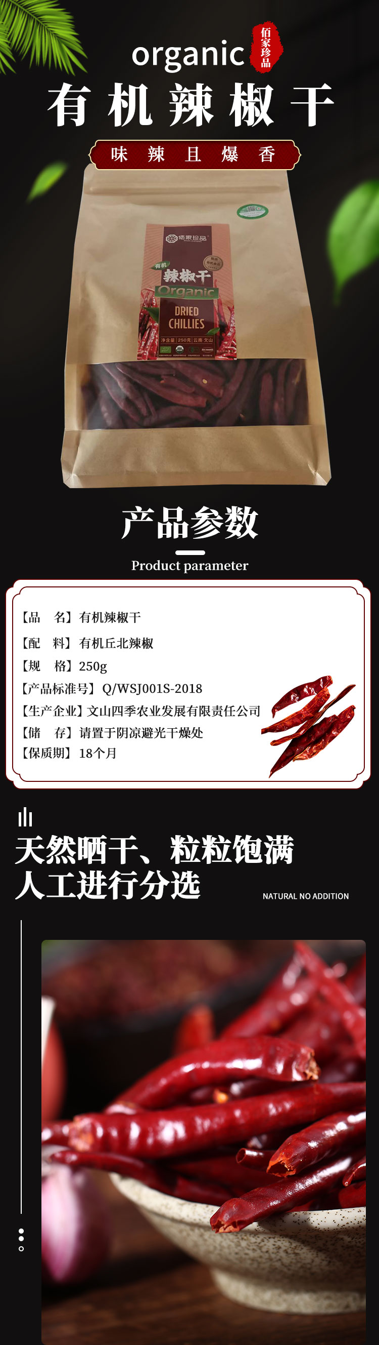 有机辣椒无把全红云南丘北辣椒干250g香中辣农家海椒包邮