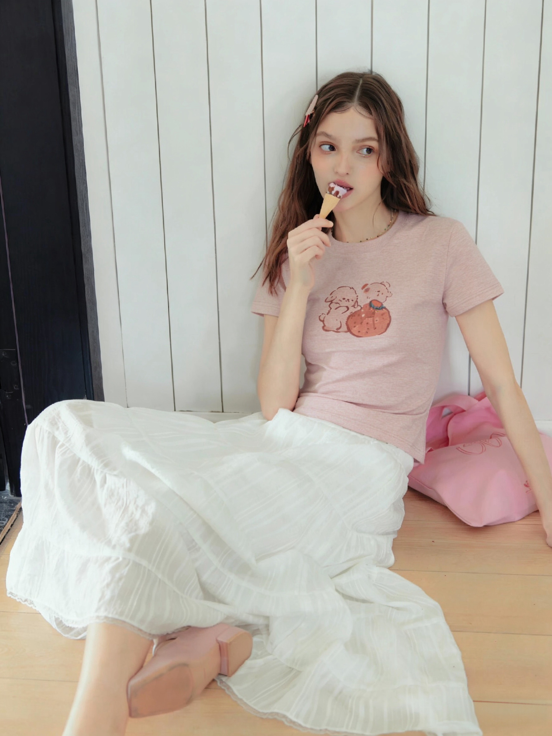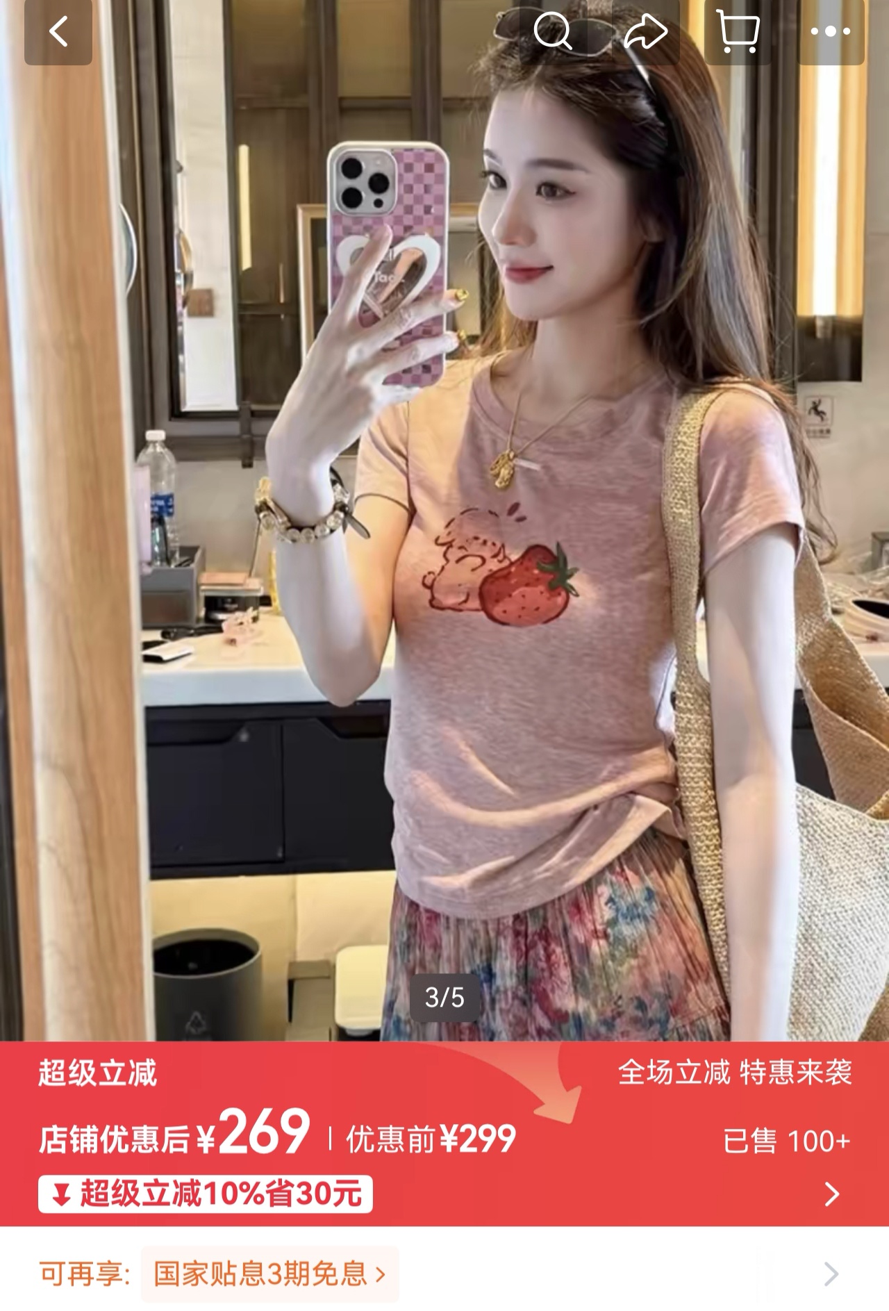 进口染料+水印数码印花草莓小兔子超减龄~!